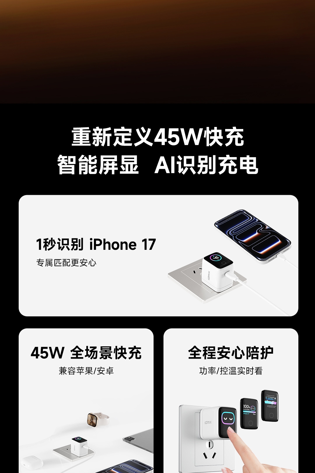 IDMIX 45W迷你AI智能屏充电器X45 Pro