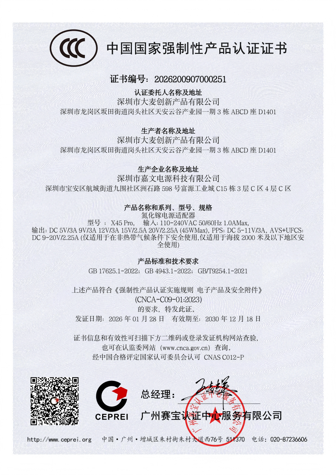 输出:DC 5V-3A,9V-3A,12V-3A,15V-2.5A,20V-2.25A(45W Max) PPS:DC 5-11V-3A,AVS+UFCS:9-20V-2.25A