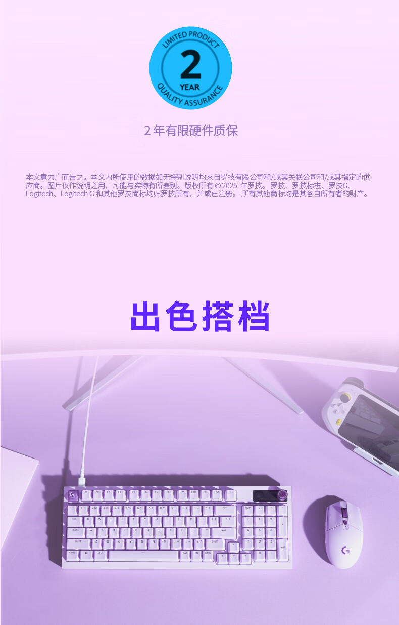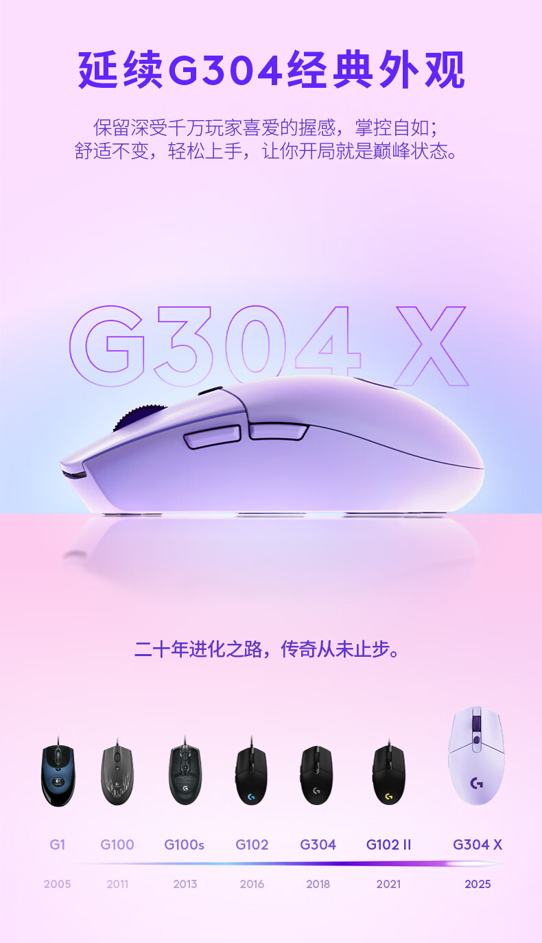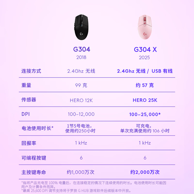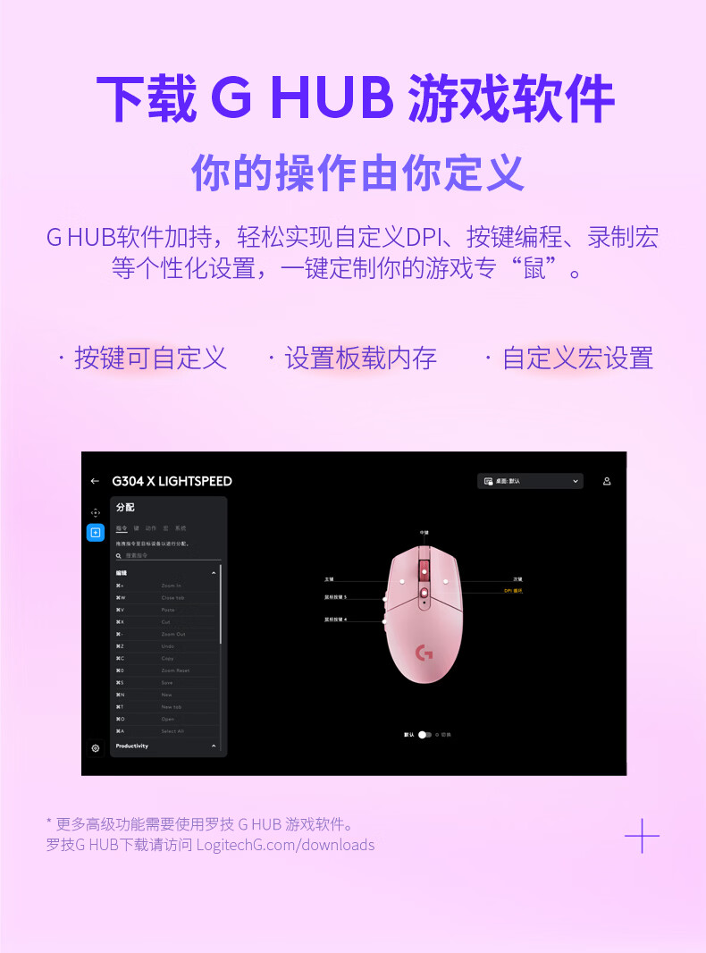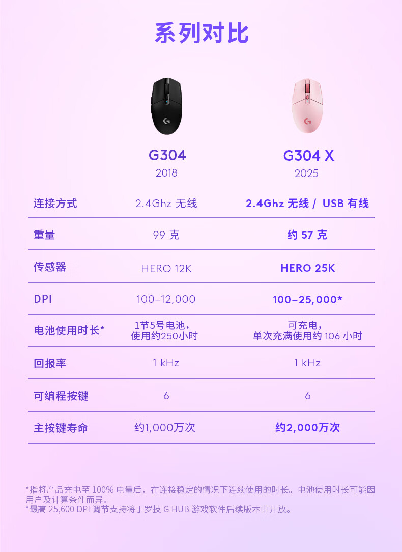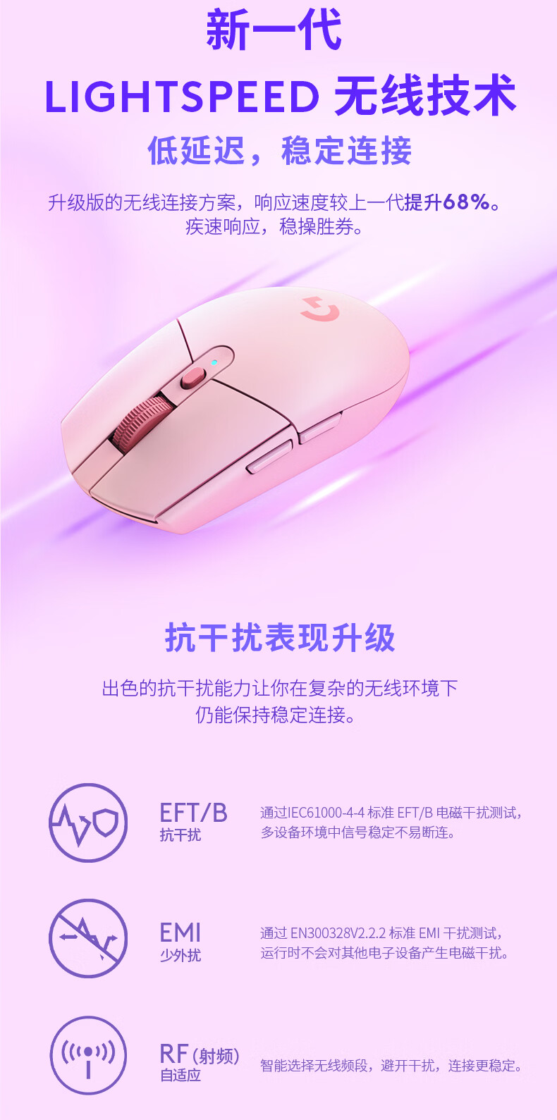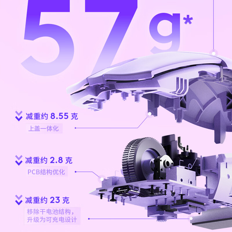 轻至约57g;罗技G定制微动;双模连接,2.4GHz/有线