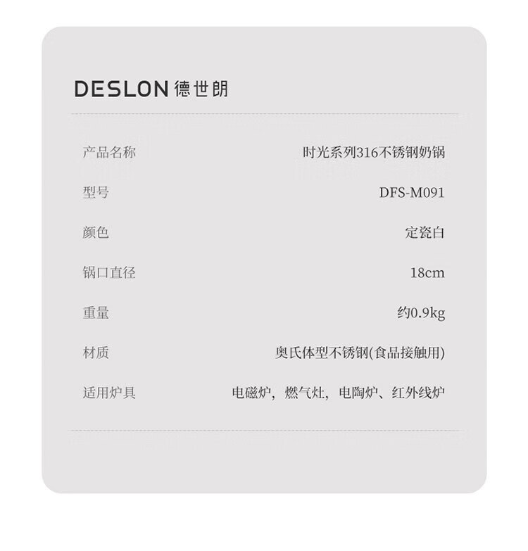 德世朗 时光系列不锈钢奶锅18cmDFS-M091