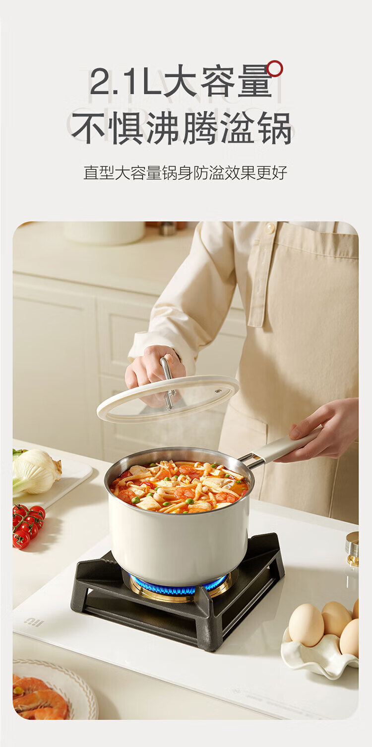 人性化高强度钢化玻璃锅盖,持久耐用;锅沿防滴漏设计,可将汤汁轻松倒出,使用方便;时尚防烫硅胶手柄设计,符合人体工程学原理