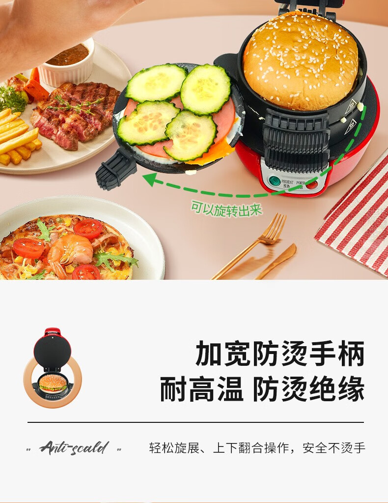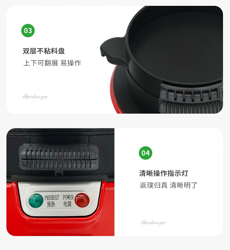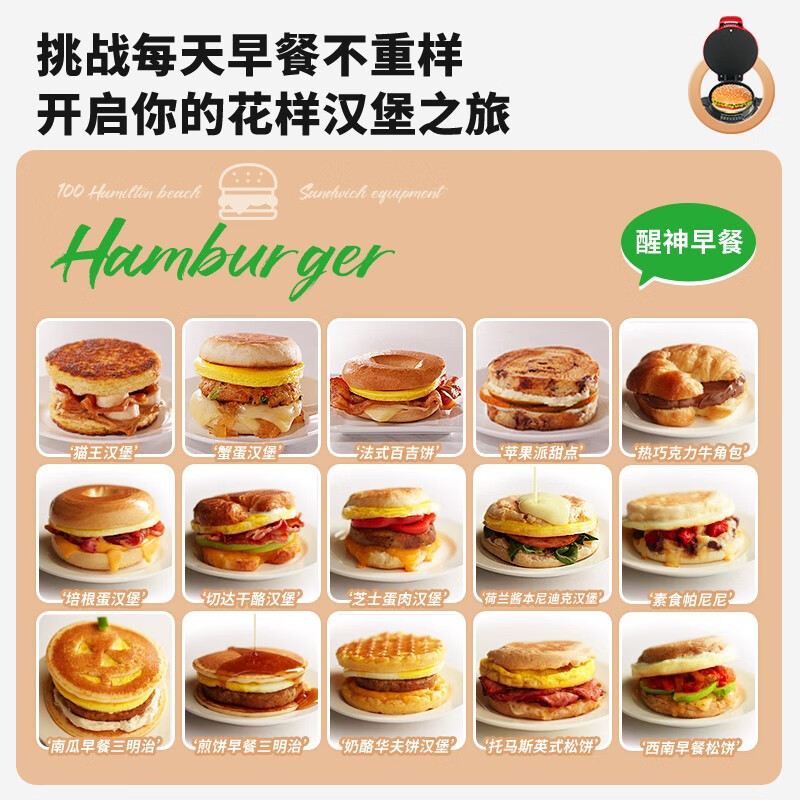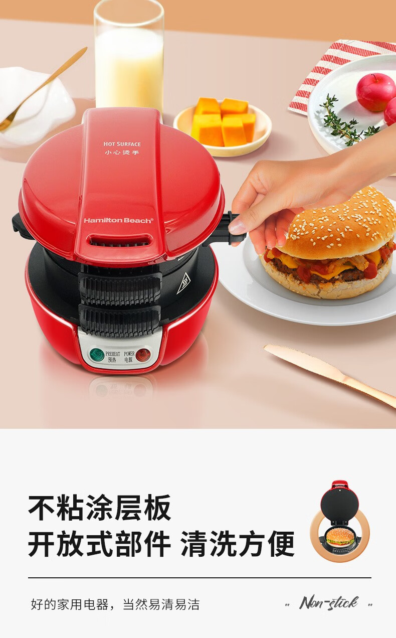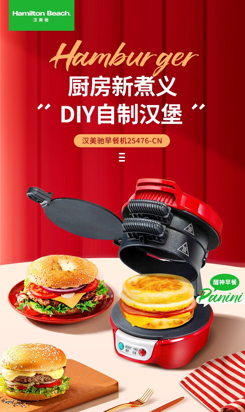 汉美驰 汉堡机早餐三明治多功能烤面包机25476-CN