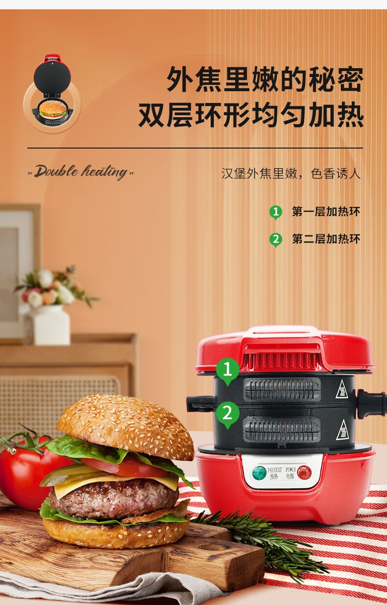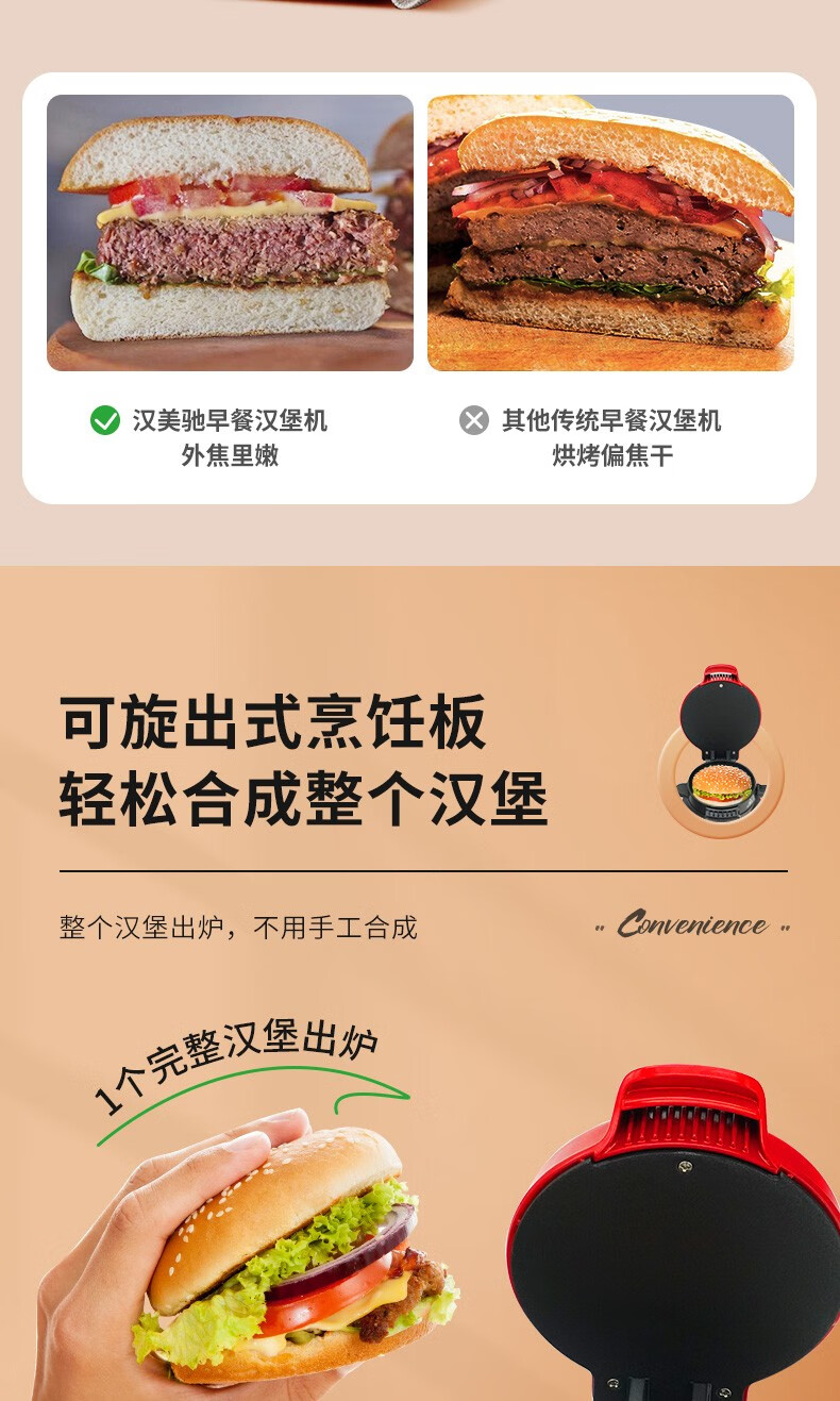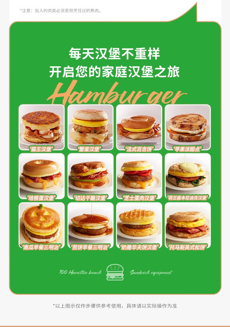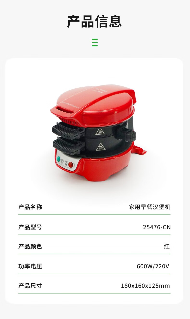 汉美驰 汉堡机早餐三明治多功能烤面包机25476-CN