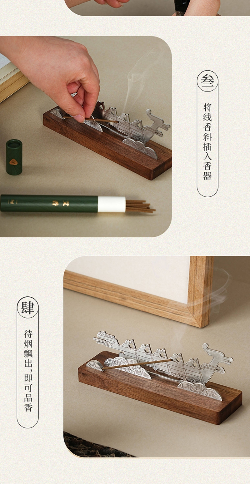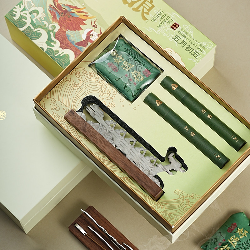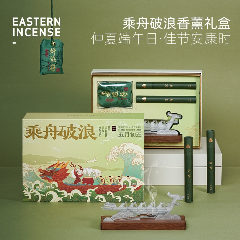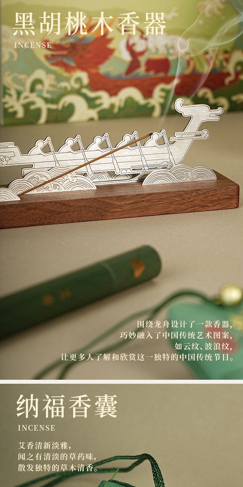 配置:龙舟香器*1 5g装·艾草短线香*1 5g装·沉香短线香*1 好运香包*1 说明卡纸*1