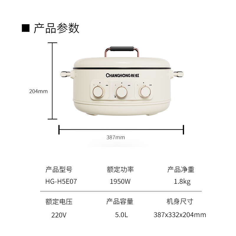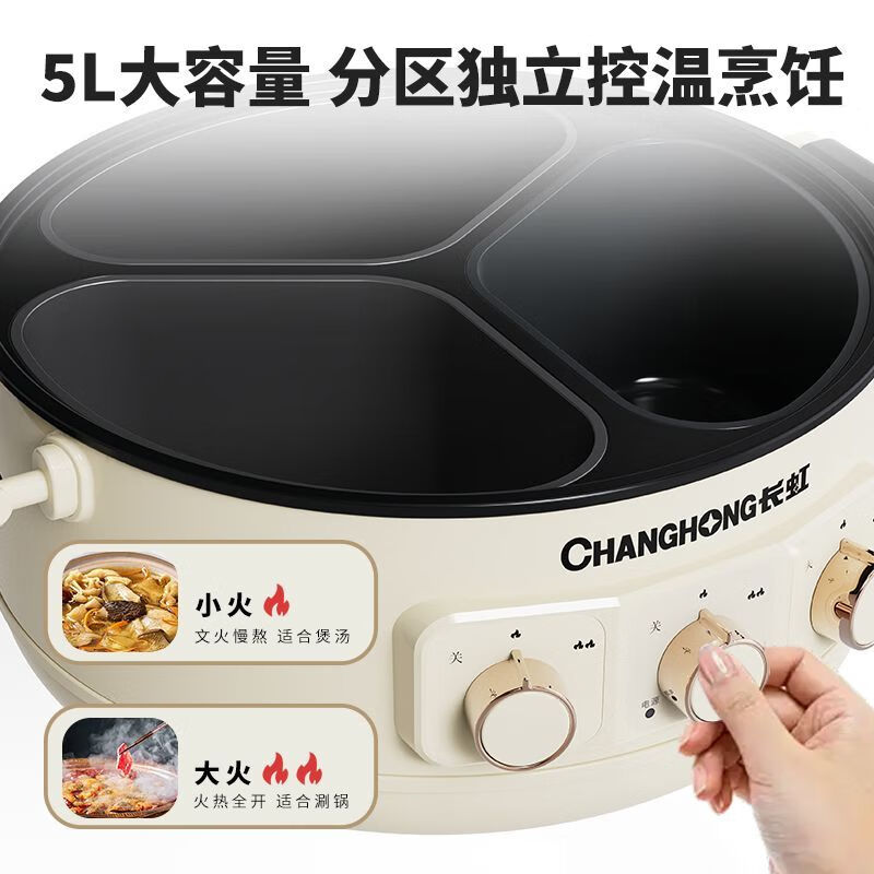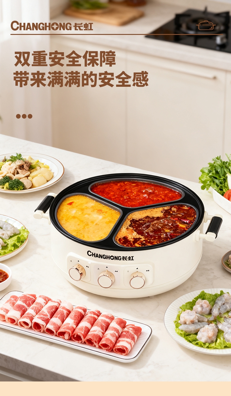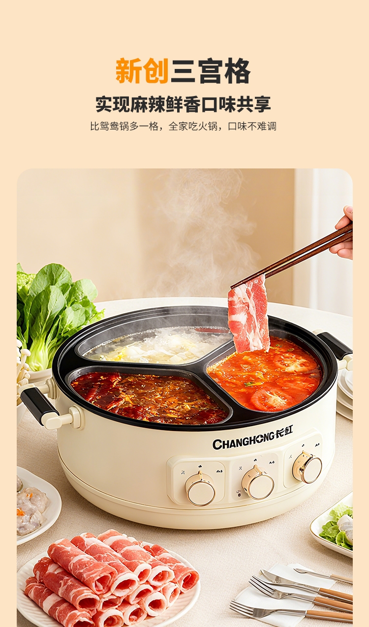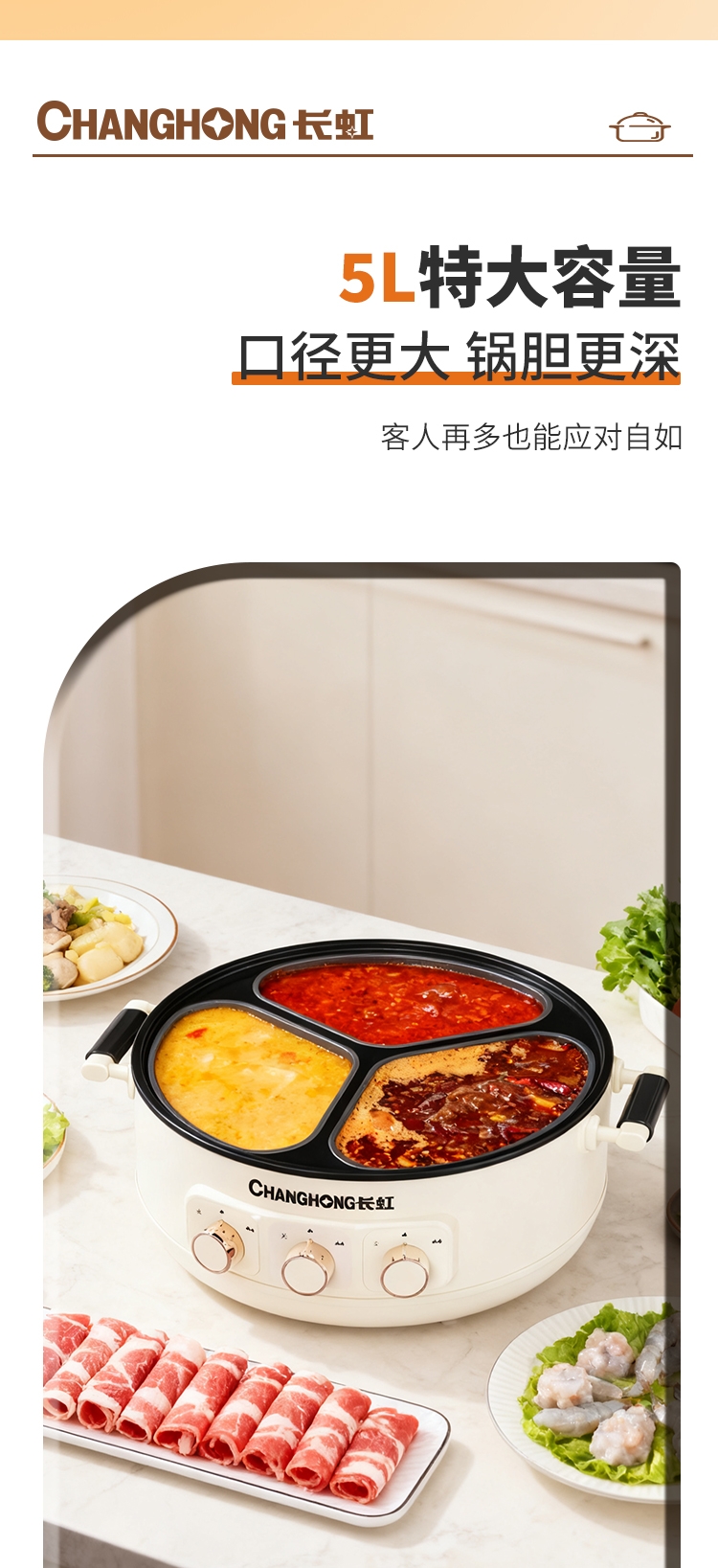 长虹 三宫格电火锅家用多功能HG-H5E07