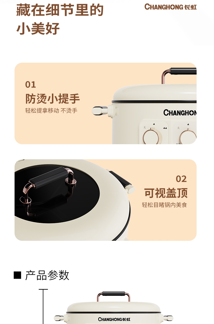 电热火锅功能:蒸,炒,炸,煎,煮,炖,焖,火锅,煮面,煲汤