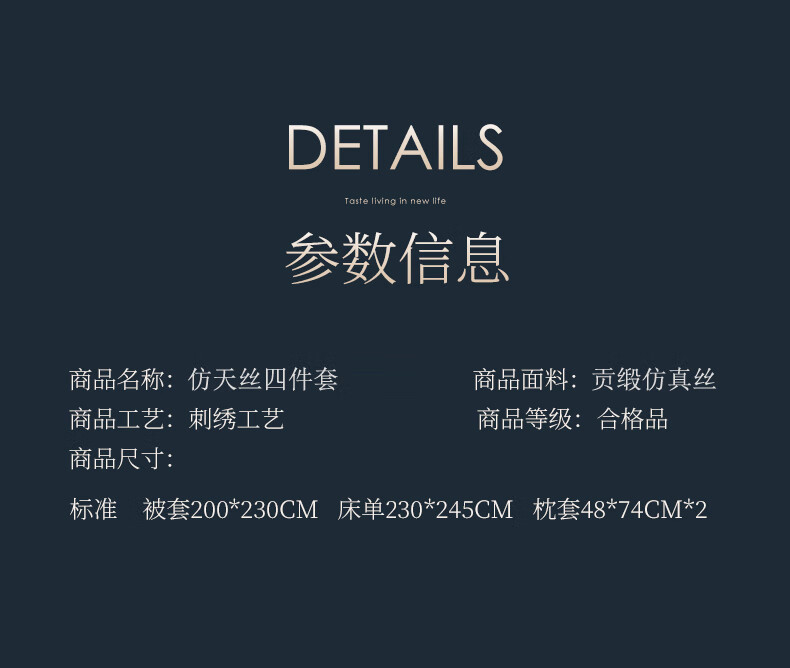 配置清单:被套*1、床单*1、枕套*2、包装*1