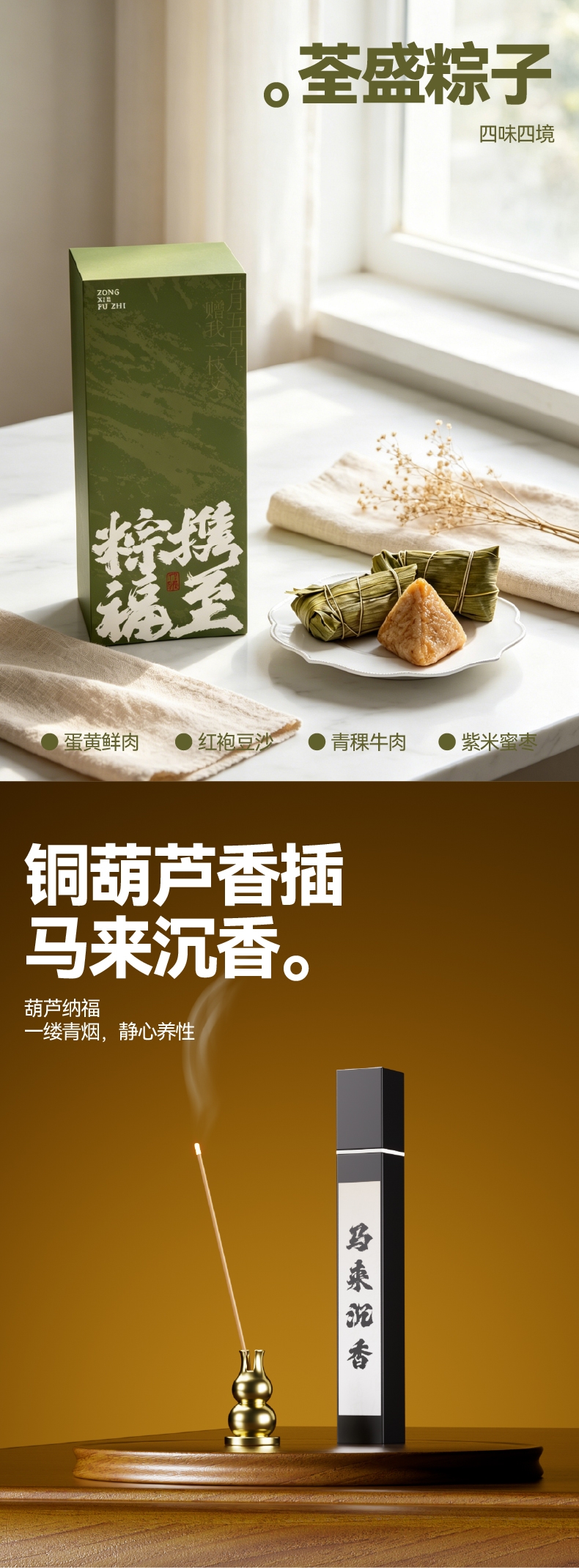 荃盛· 粽子:口味:蛋黄鲜肉粽x1、红袍豆沙粽x1 青稞牛肉粽x1、紫米蜜枣棕x1 规格:100g/个