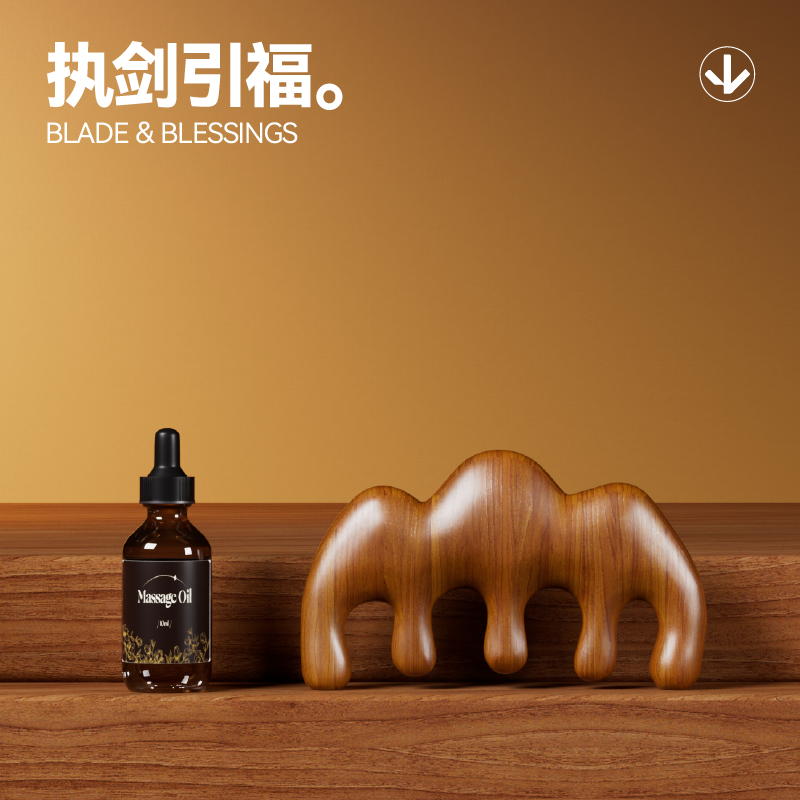 观山·按摩梳套装:规格:梳子-宽度约95mm 精油-10ml 材质: 梳-金丝檀木