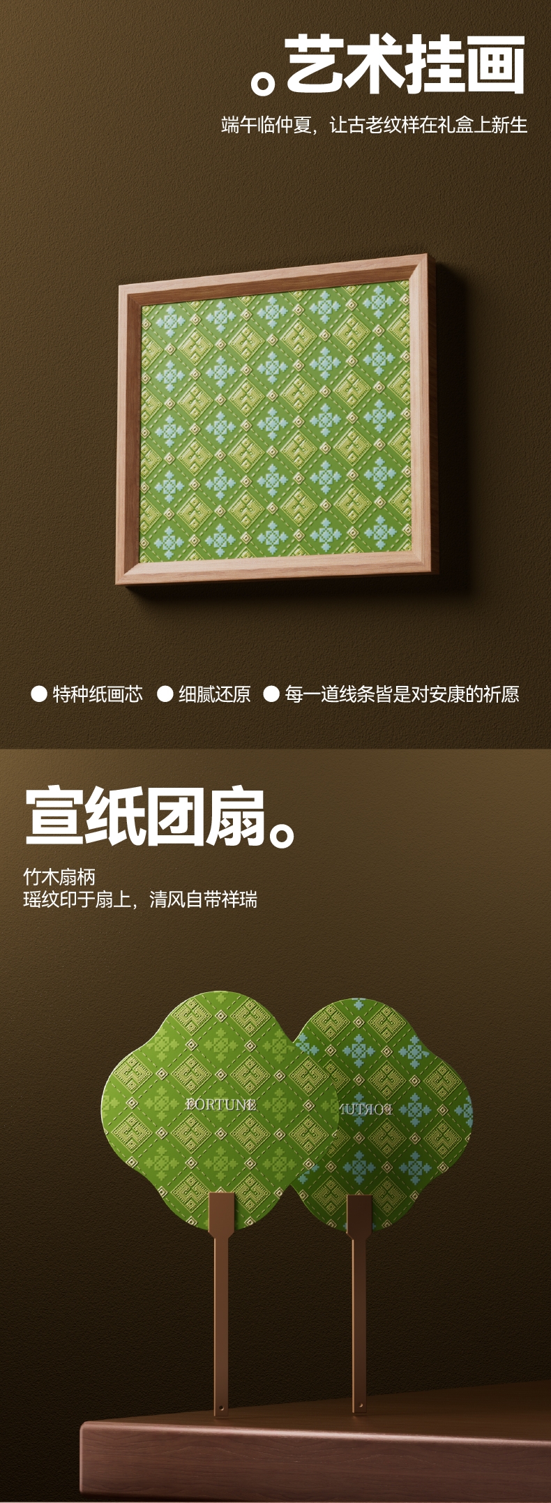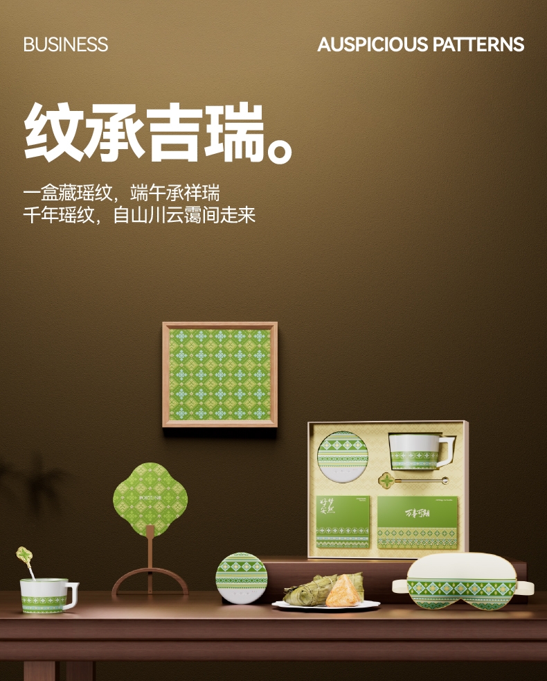 端午临仲夏,我们撷取这份跨越山海的吉祥符号;每一道线条,皆是对安康的祈愿,每一寸构图,皆是对传;纹中有礼,瑞自天成。