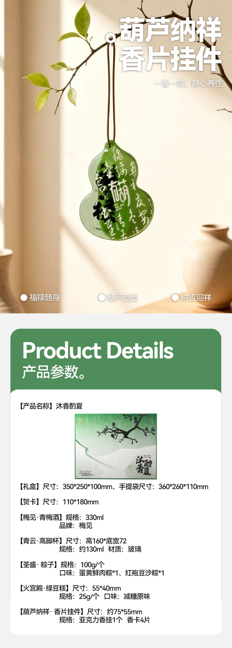 一粽尝端午,一壶煮时光,青梅入酿,葫芦纳祥;沐香之间,酌夏之味;礼呈风雅颂,情寄君子堂