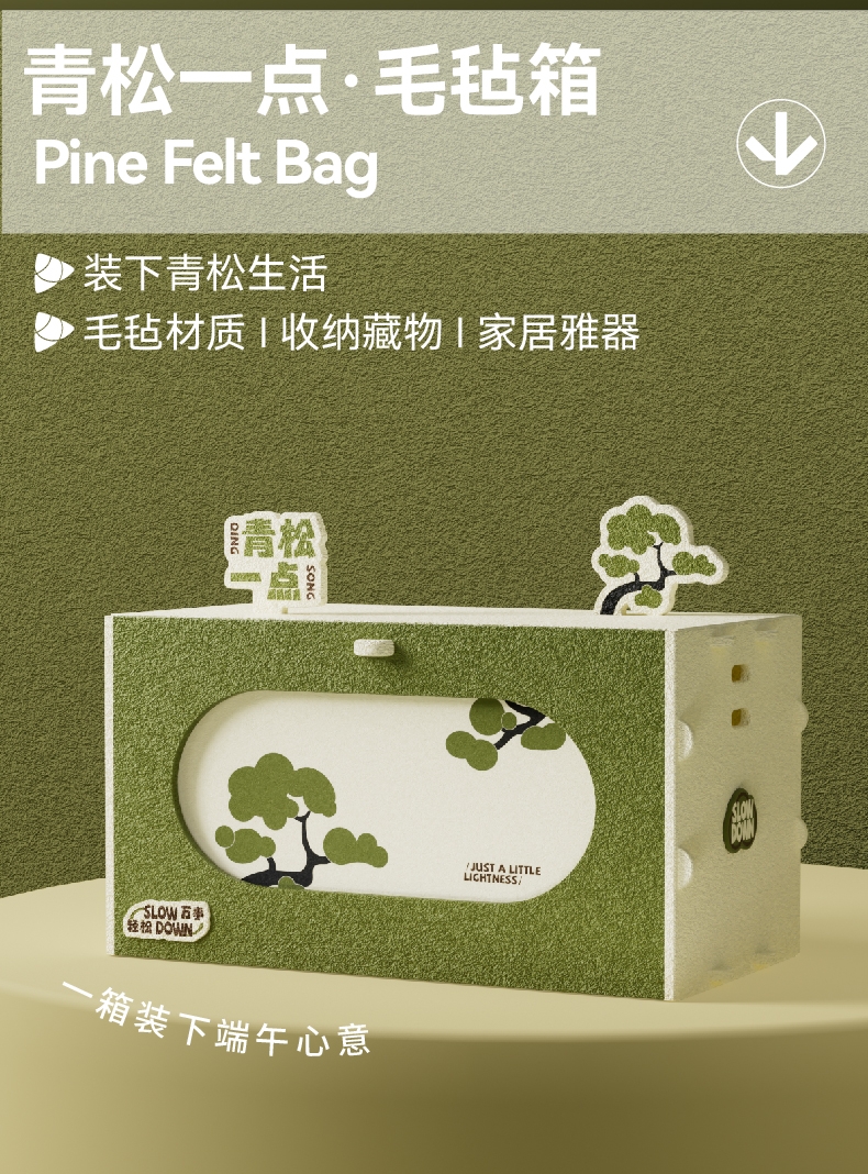青松毛毡箱/收纳盒:尺寸:450x250x240mm 材质:毛毡