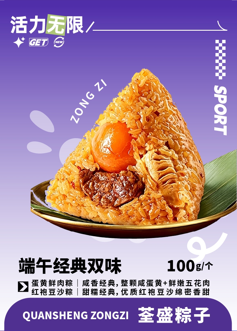 荃盛粽子:蛋黄鲜肉、豆沙粽 100g/个