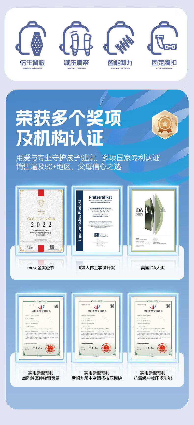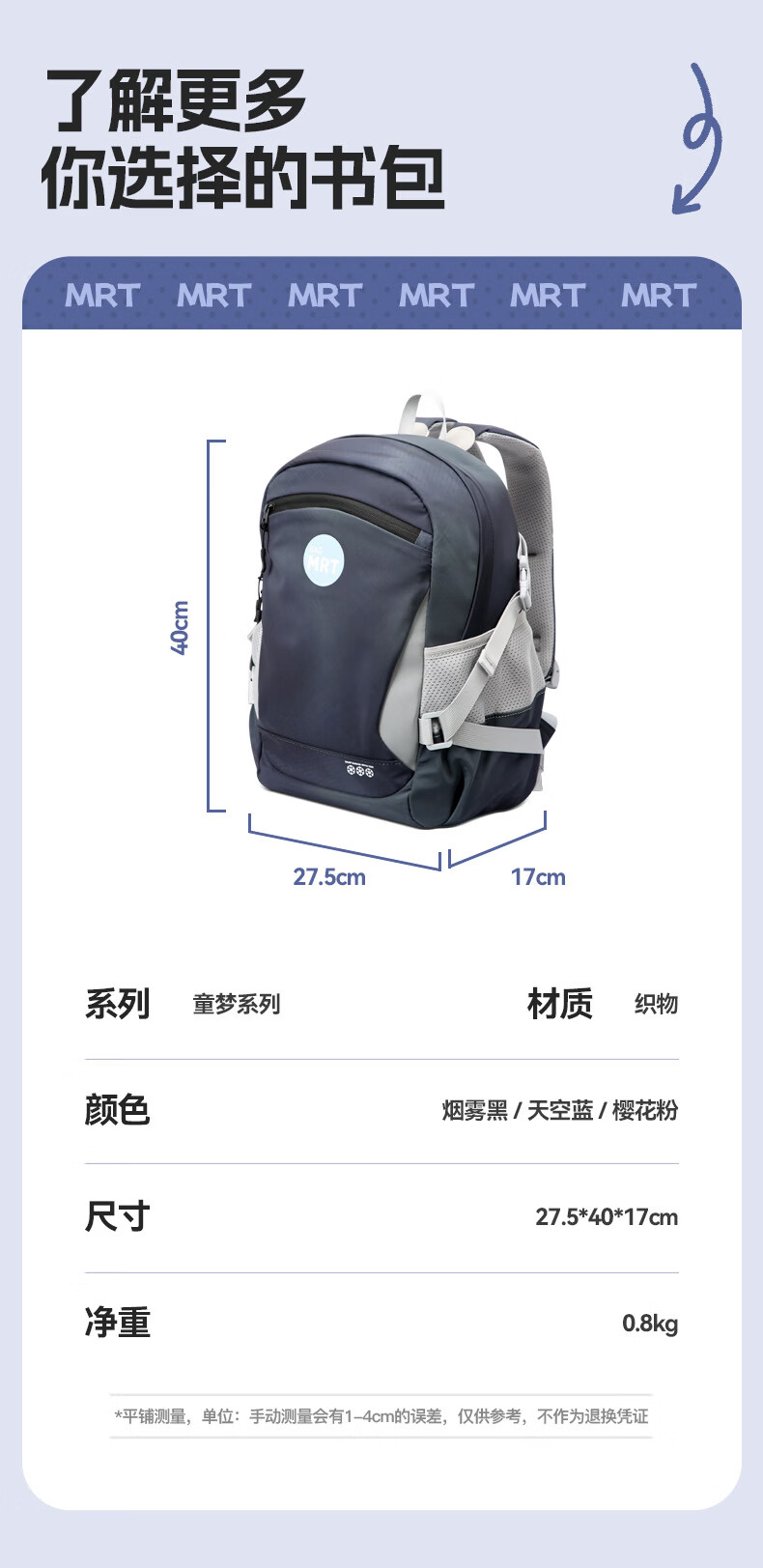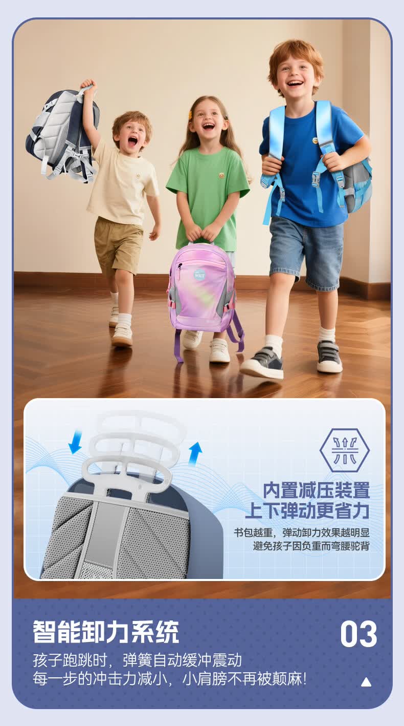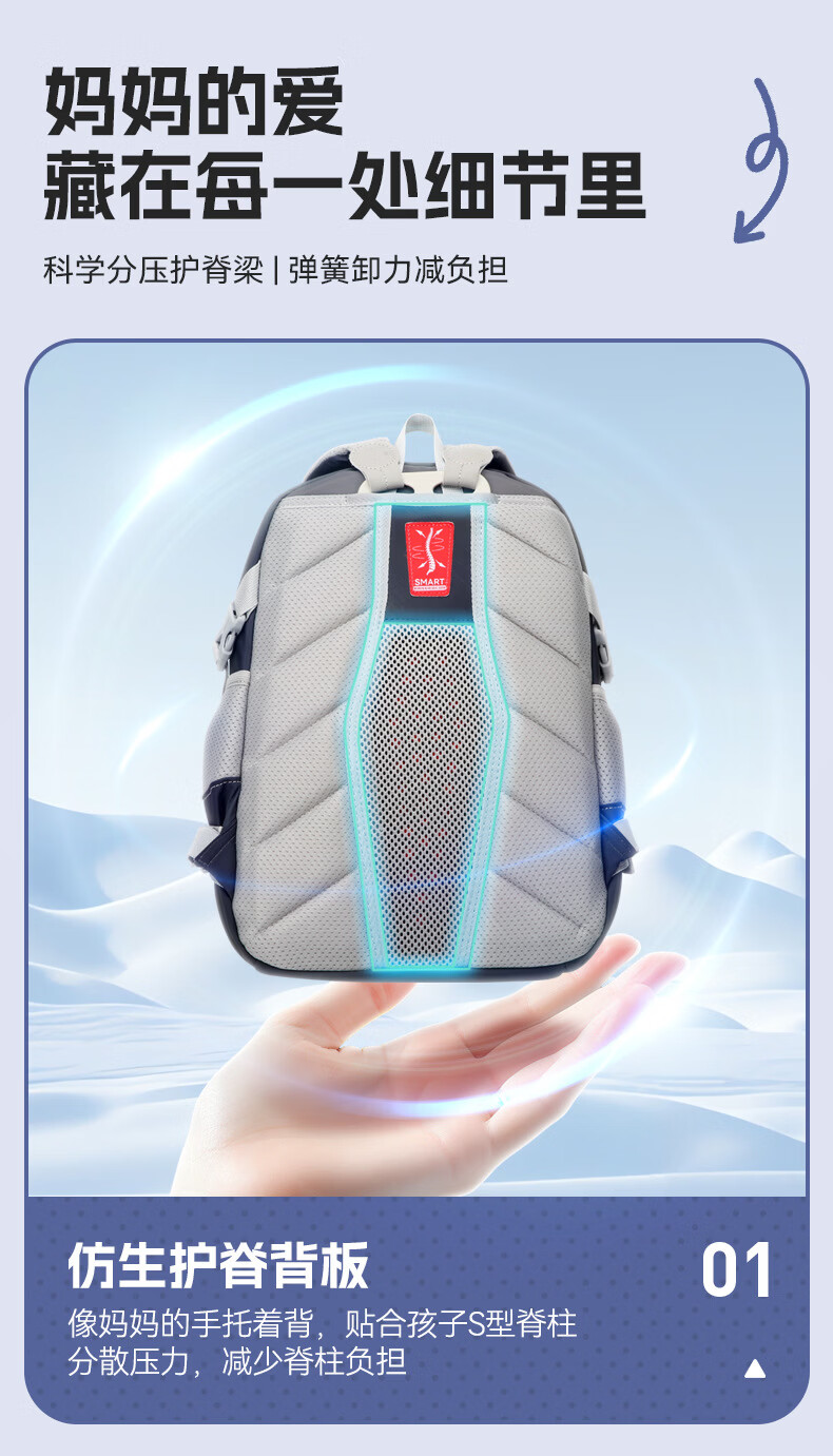 材质耐磨防泼水,撞色设计;背部减负减震器,防滑胸扣;独立侧袋水杯位,多层收纳口袋,夜间反光条