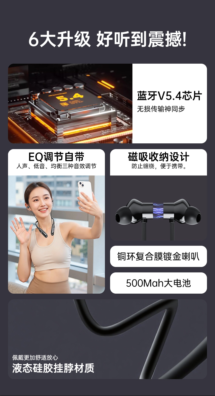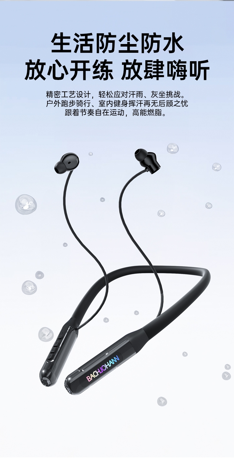 采用优质硅胶+金属材质,密闭性强,人性化三种尺寸;采用国际先进的5.0蓝牙技术;采用优质硅胶+金属材质,密闭性强