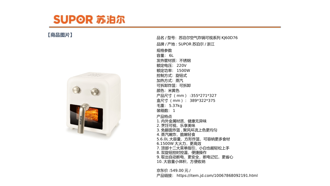 商品特征: