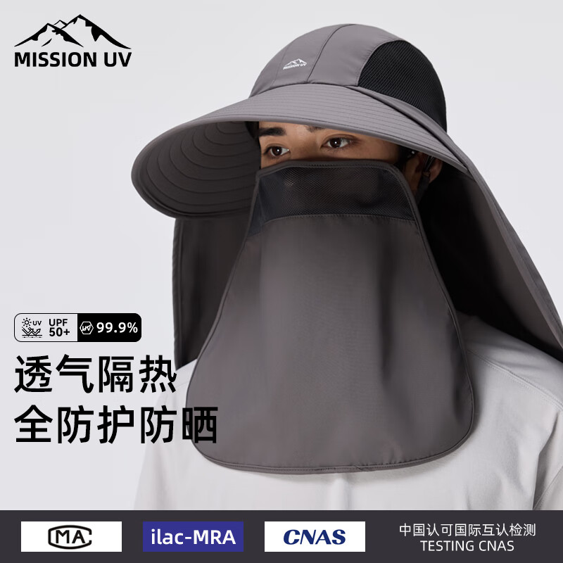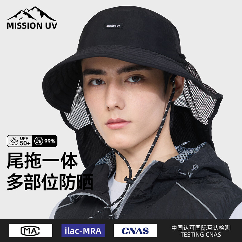 透气率高达360mm/s、持久防晒不闷热;帽顶自带收纳口、3秒收成掌心大小、小巧携带不占空间;UPF50+、环绕式全脸防晒、紫外线阻隔率>99%