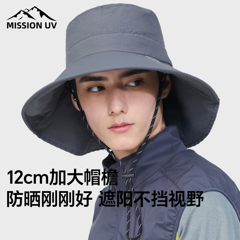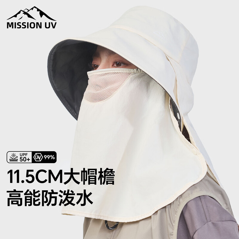 帽围高弹力设计;12cm加大帽檐防晒至锁骨 戴着也没感觉轻≈58g;UPF50 +原纱防晒 水洗不减防晒力