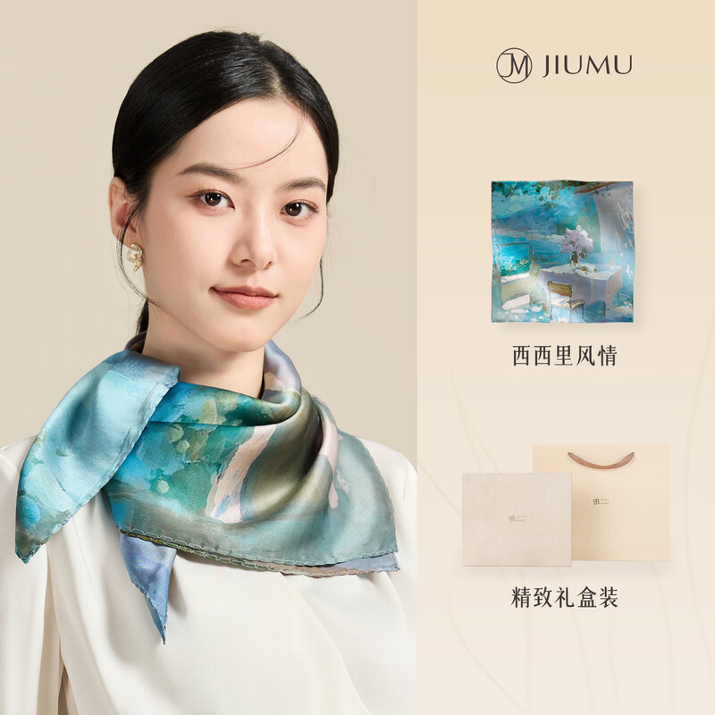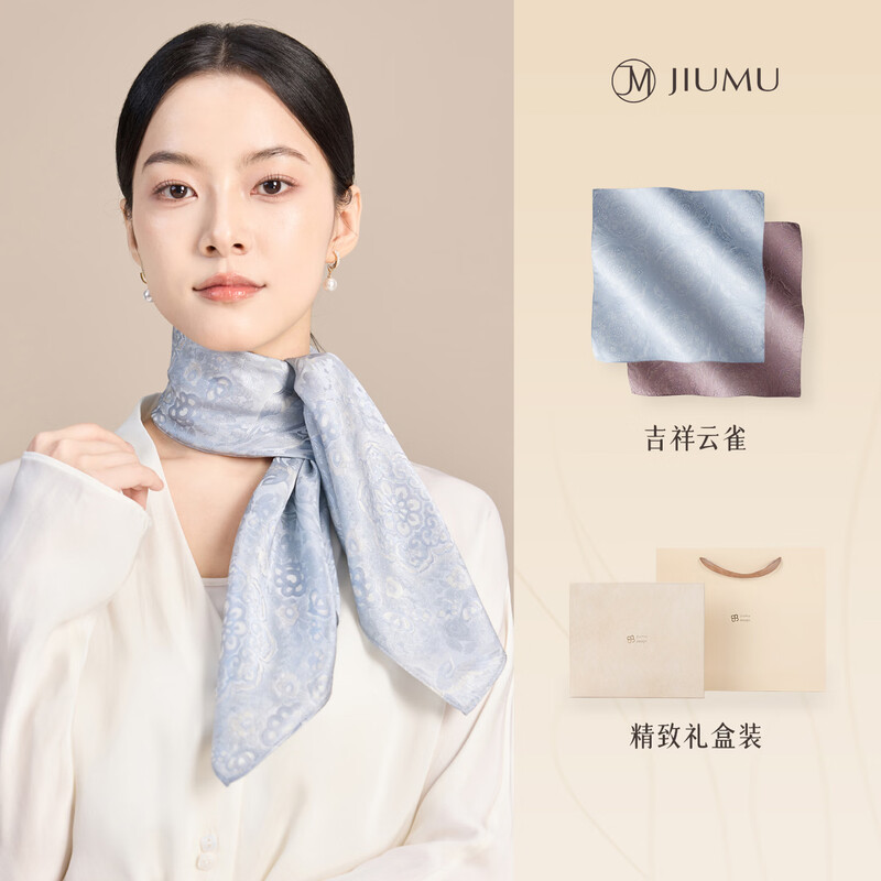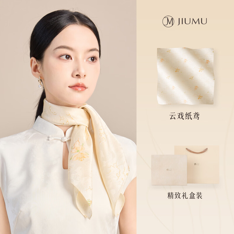 丝巾面料采用绸锦缎材质,含有涤氨材料;丝巾两角设计磁力吸扣,轻松解锁各种丝巾系法;工艺上使用了环保活性水染染料,着色效果好