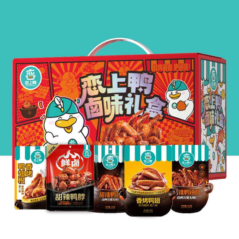 保证产品鲜醇的口感;恋上鸭卤铺通过年轻时尚的品牌表达;满足消费者对美味健康零食的消费需求