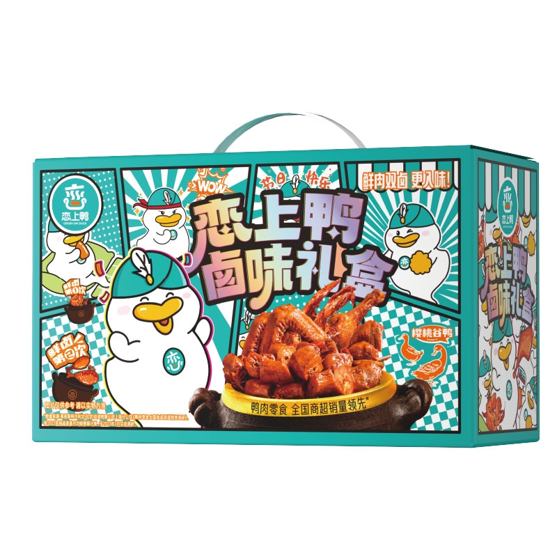 恋上鸭卤铺致力于成为休闲鸭肉零食领导品牌;恋上鸭卤铺通过年轻时尚的品牌表达;保证产品鲜醇的口感