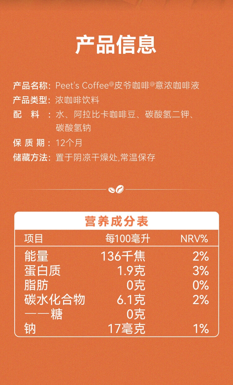配料:水、阿拉比卡咖啡豆、磷酸氢二钾、碳酸氢钠