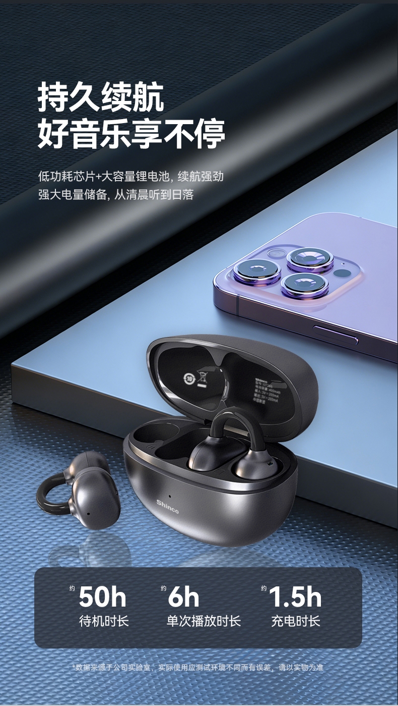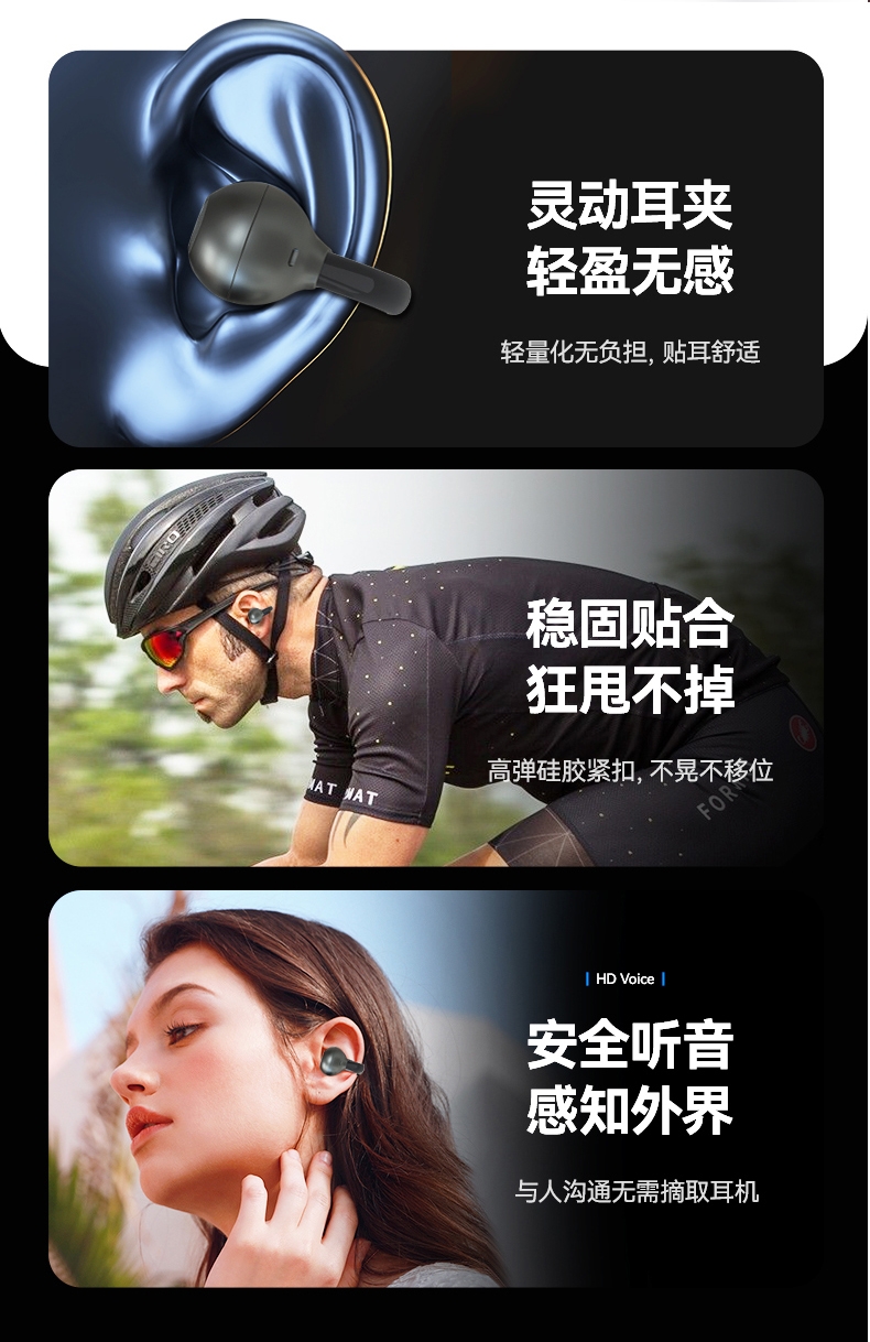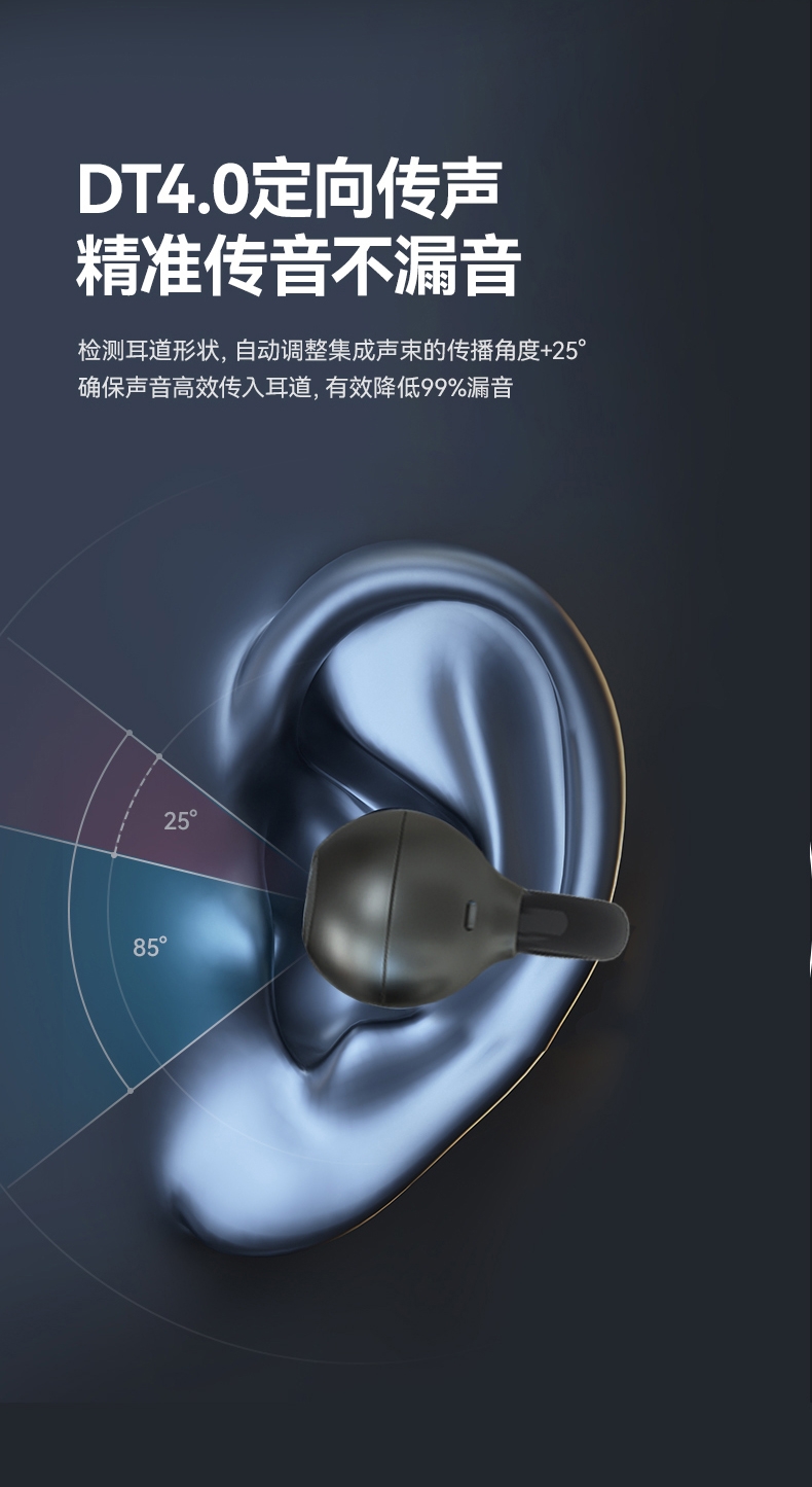 OPEN开放式不入耳、无感佩戴、安全听音;高解析大声场澎湃立体环绕声;新一代的低功耗蓝牙6.0芯片,连接简单快捷