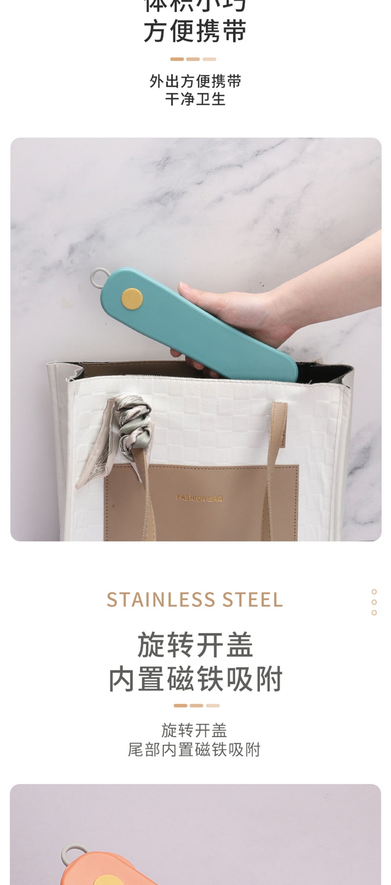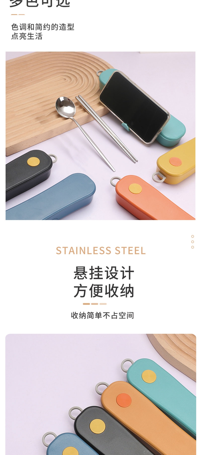 掌心级收纳盒,随身带毫无负担;自带筷勺,干净卫生不碰公筷;多色高颜值,实用也能当小配饰