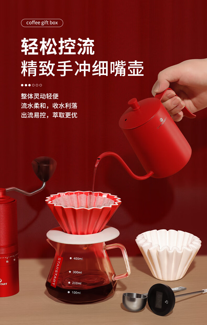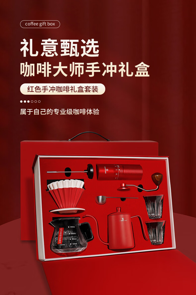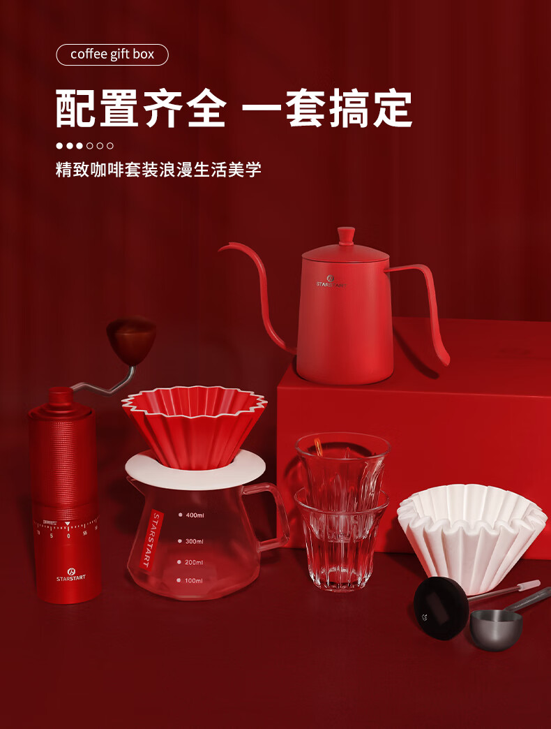星世嘉 手冲咖啡壶套装手摇磨豆机礼盒61616