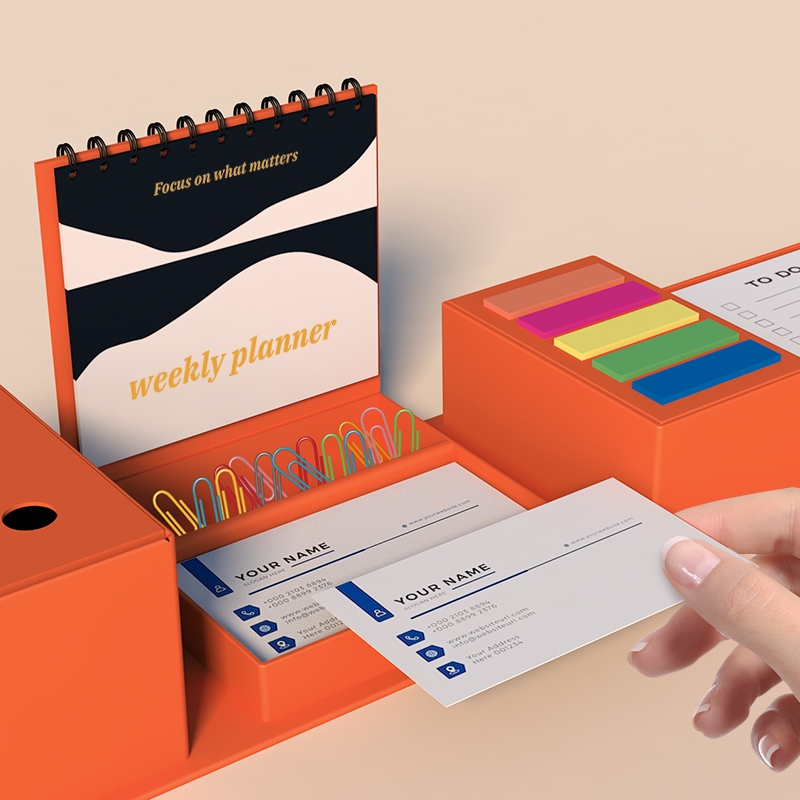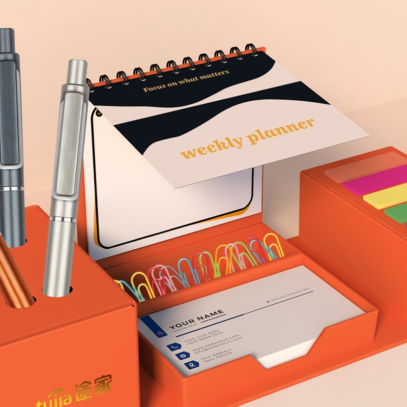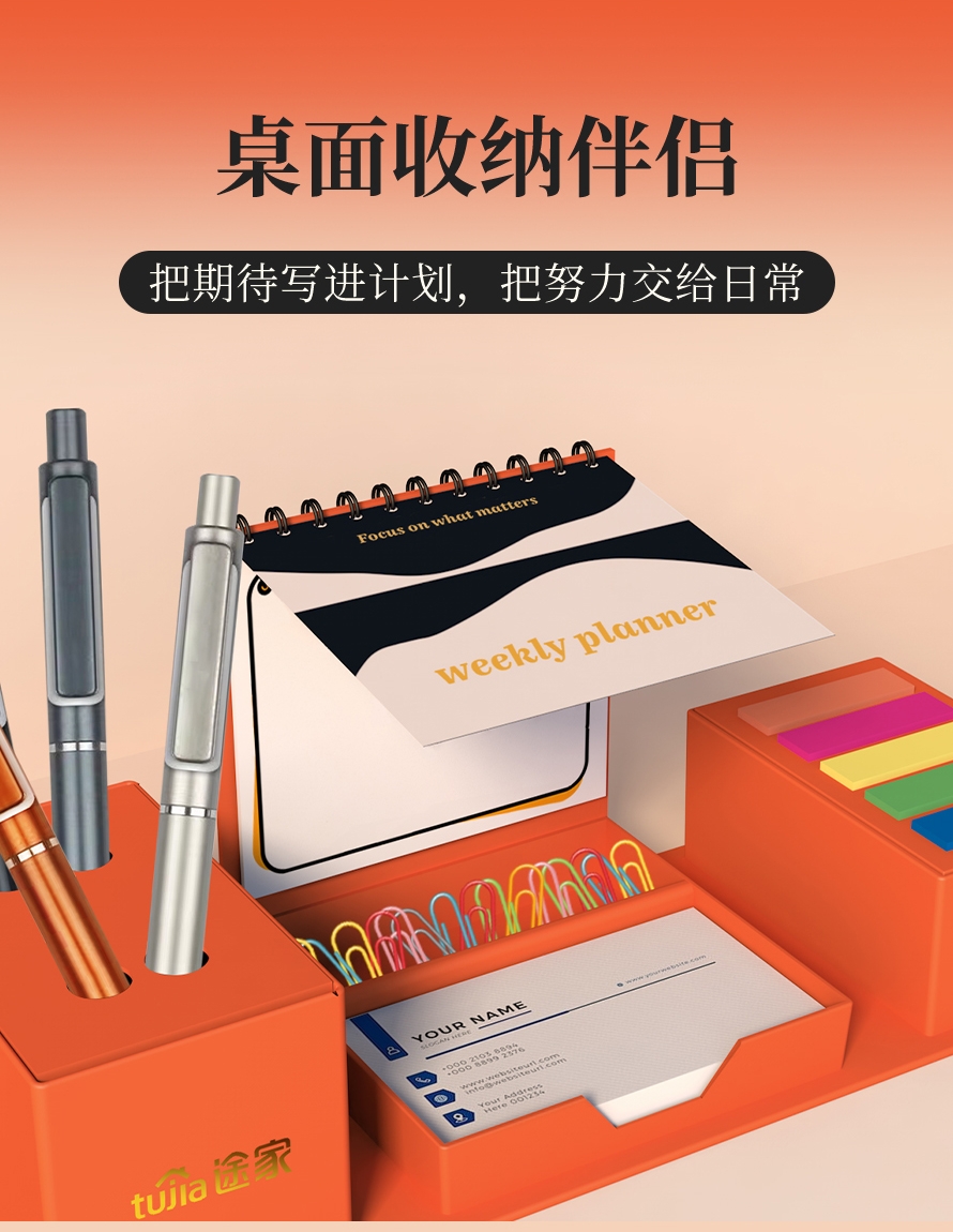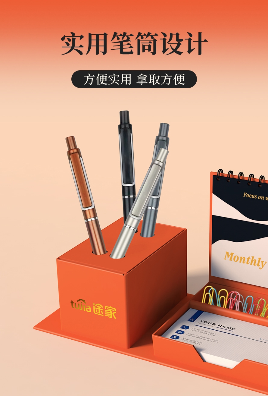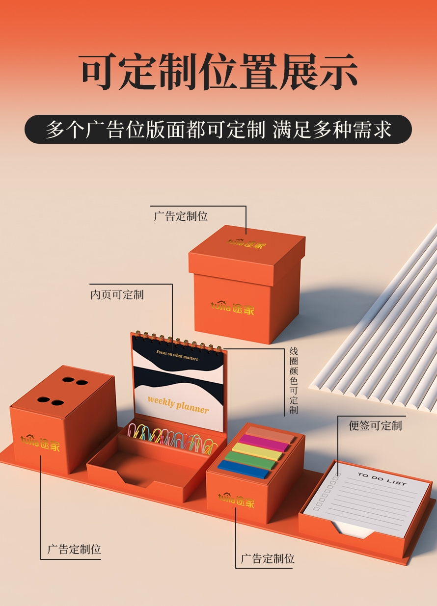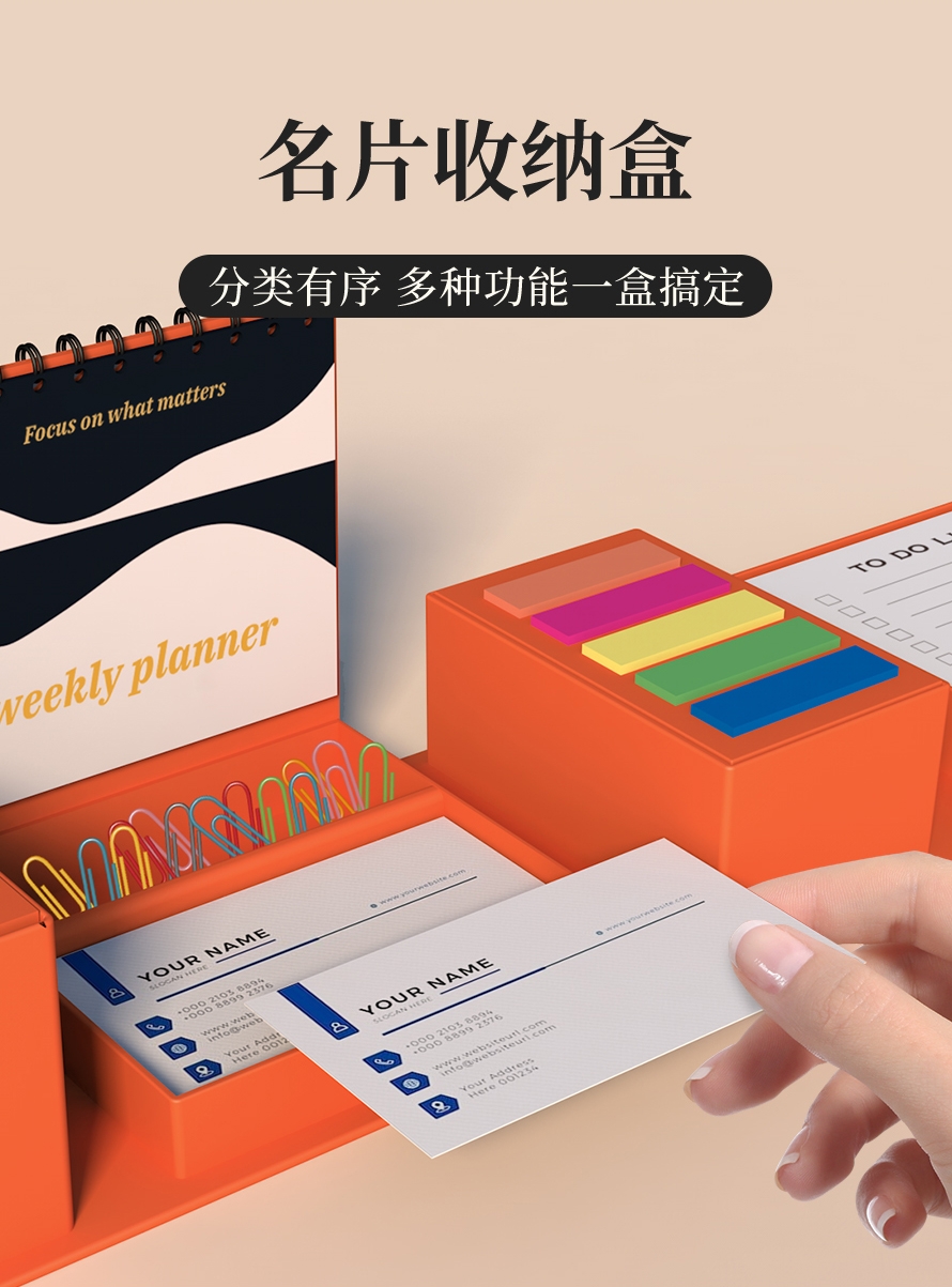 可折叠设计 折叠收起不占空间;名片收纳盒 分类有序多种功能一盒搞定;实用笔筒设计多个广告位版面都可定制满足多种需求