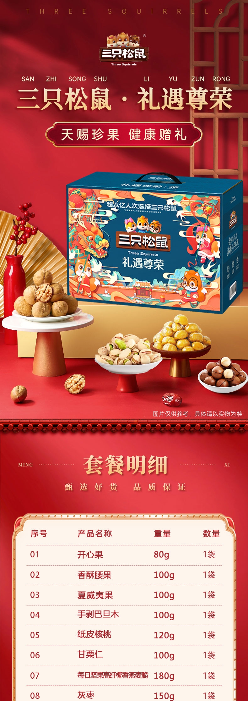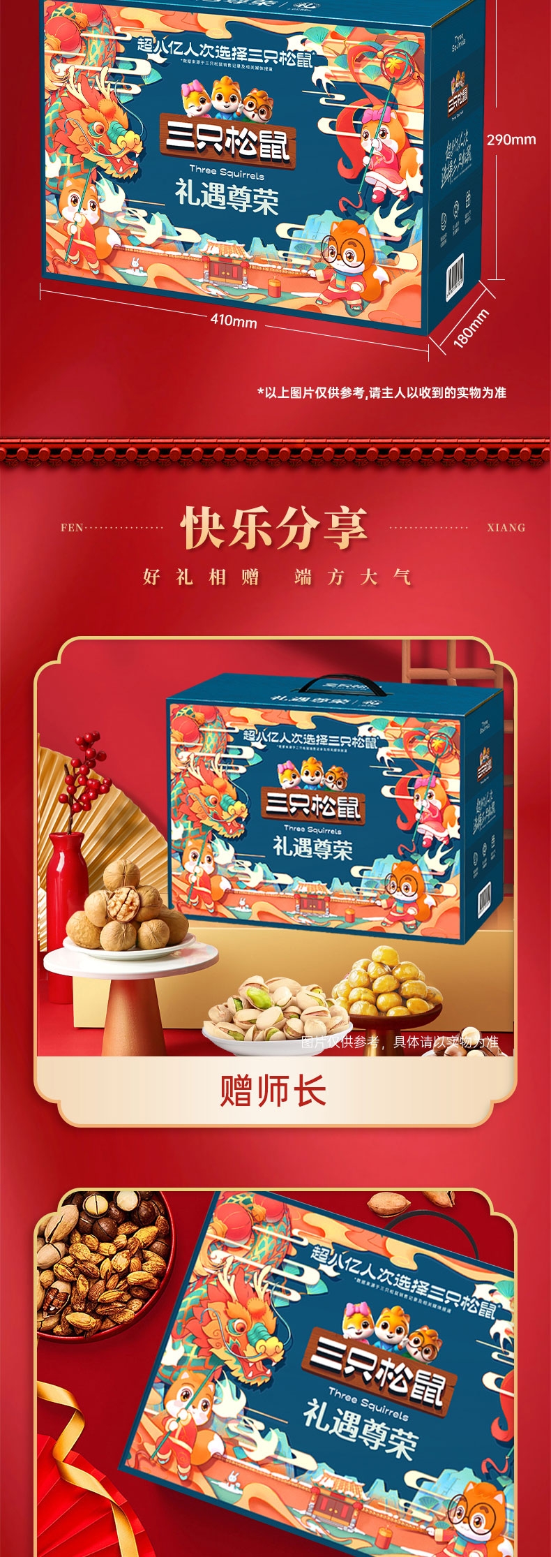 三只松鼠健康坚果的代表;好吃又健康,坚果界的领头羊;礼盒包装新颖又好看