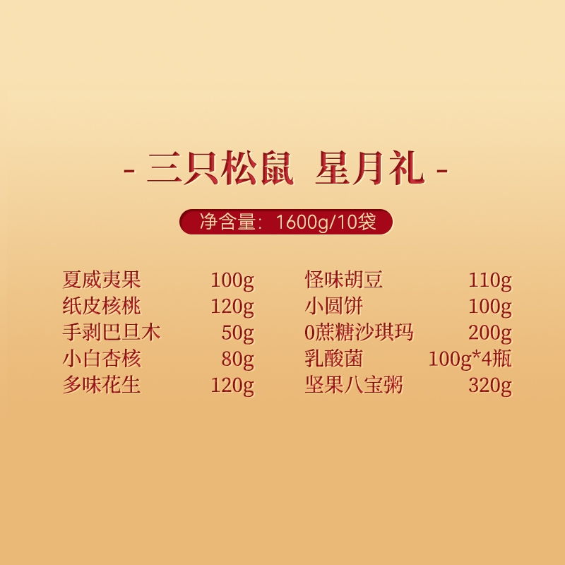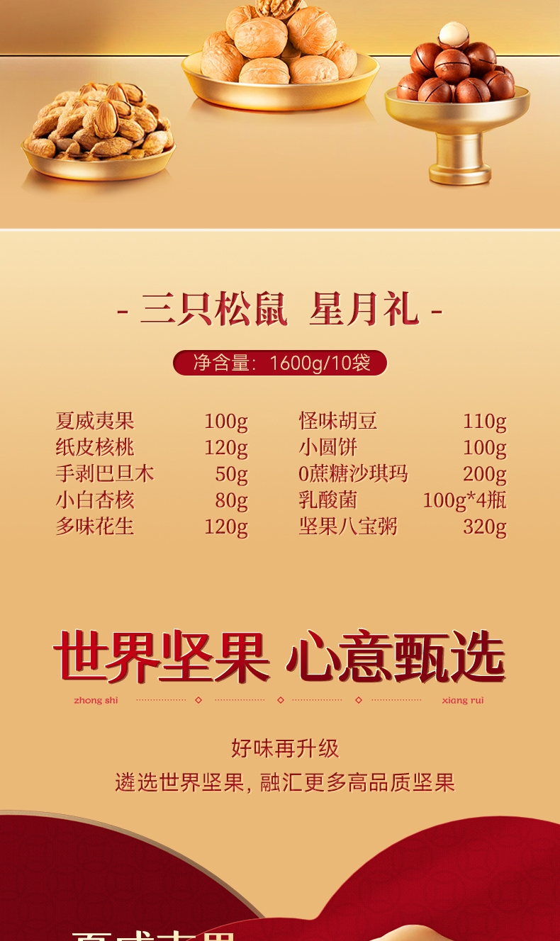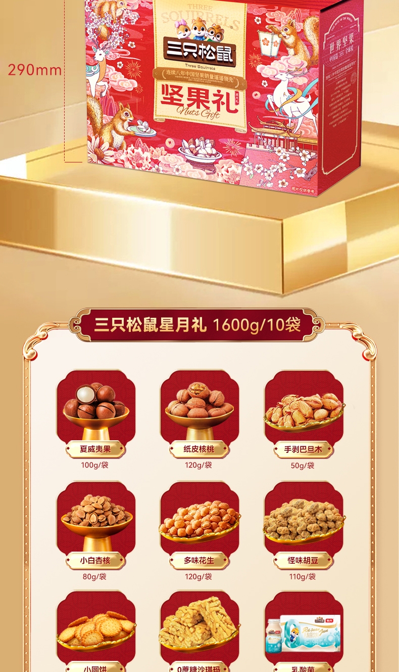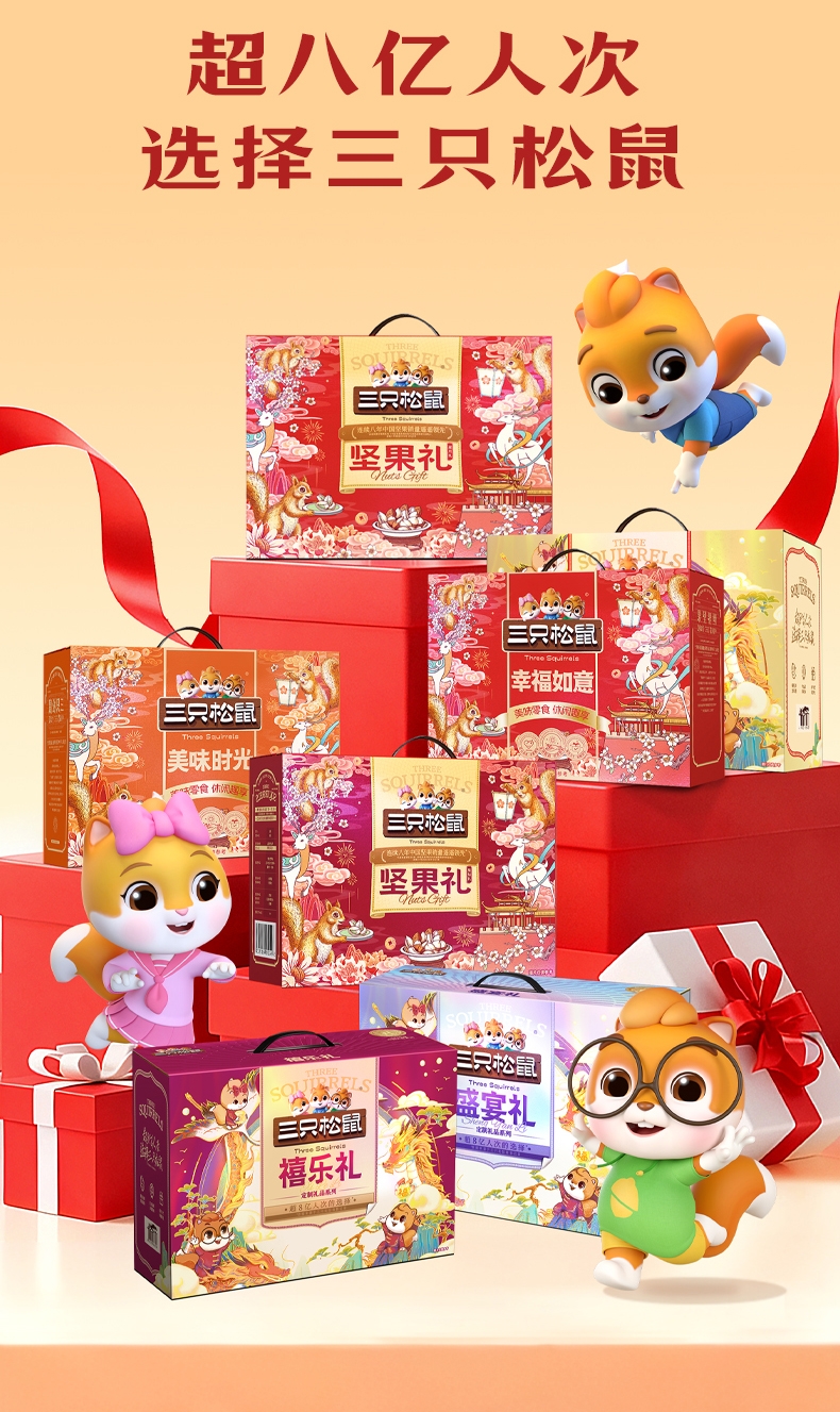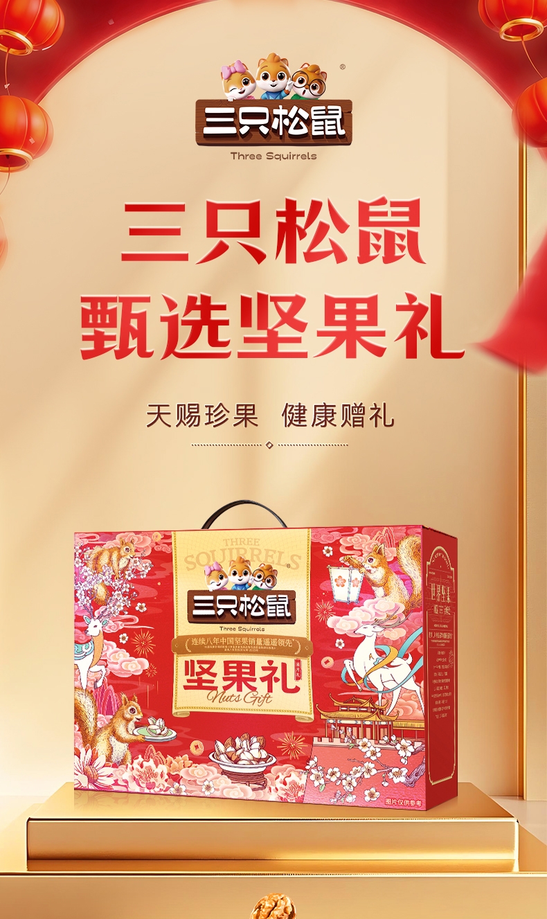 三只松鼠健康坚果的代表;好吃又健康,坚果界的领头羊;礼盒包装新颖又好看
