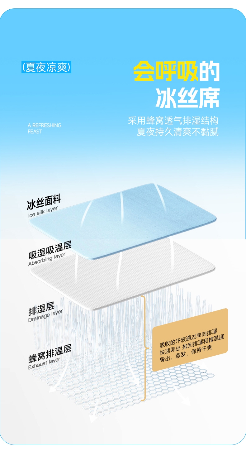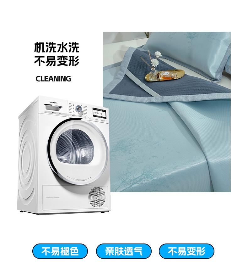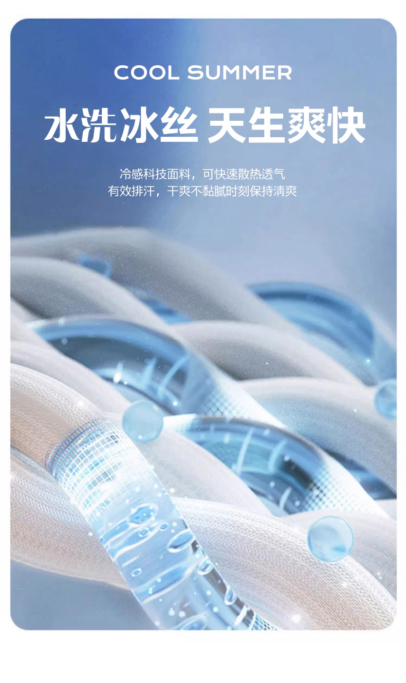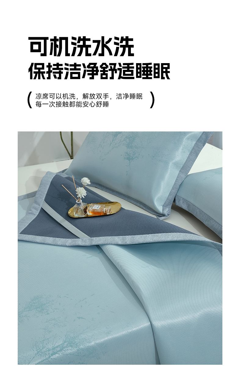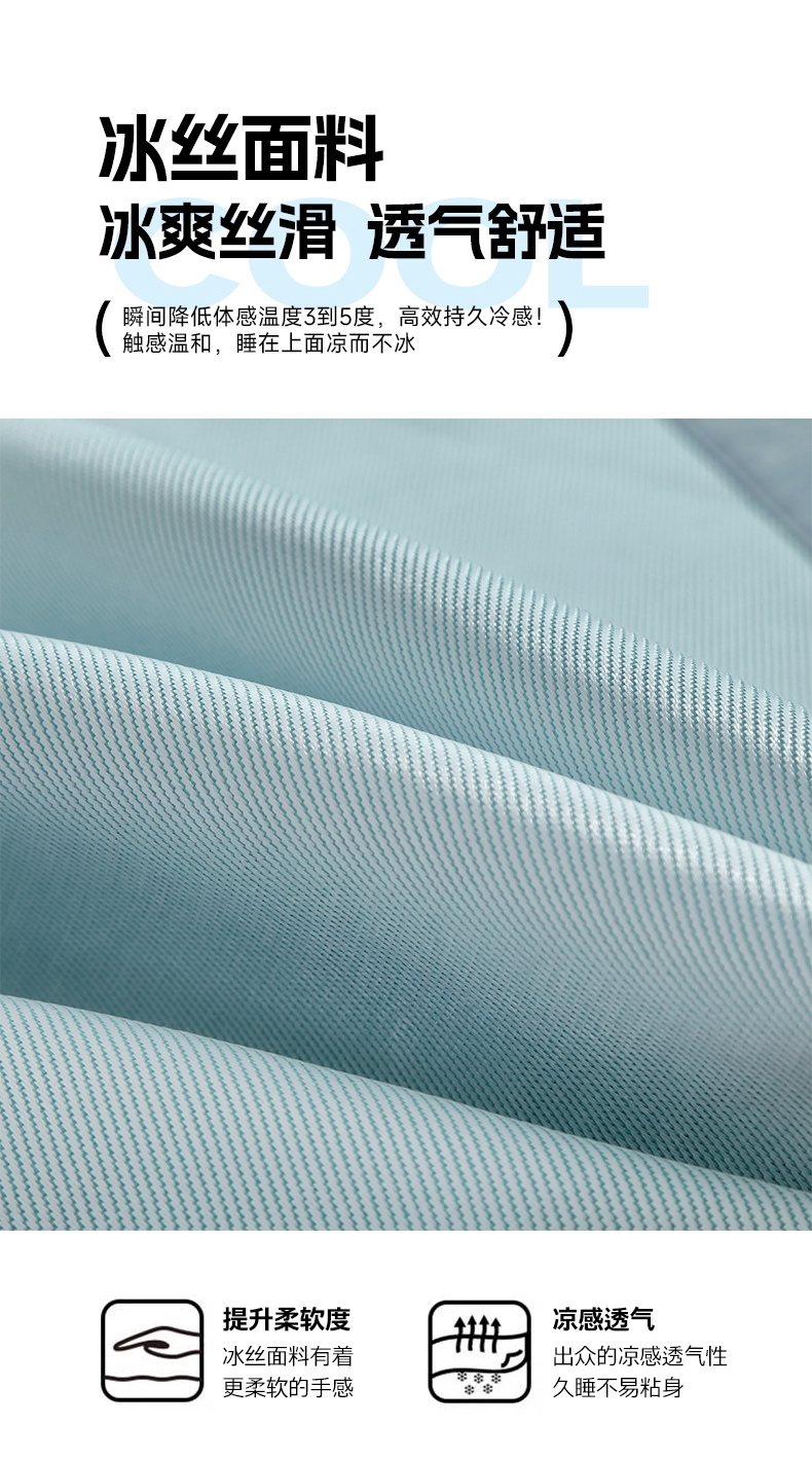 水洗冰丝严选优质冰丝为原材料;冰爽丝滑 ;透气舒适