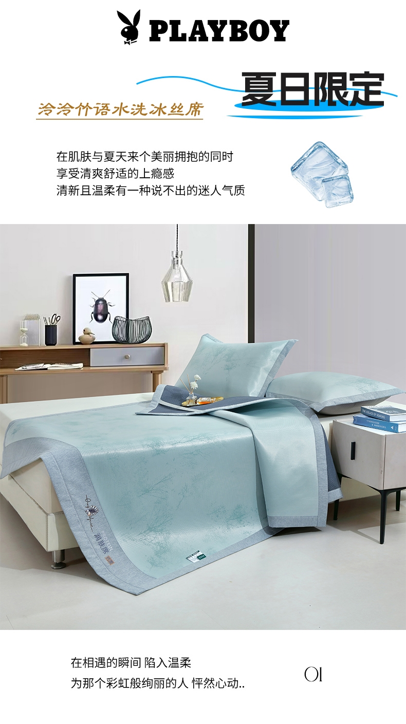 花花公子 泠泠竹语水洗冰丝席三件套PB-25ML707