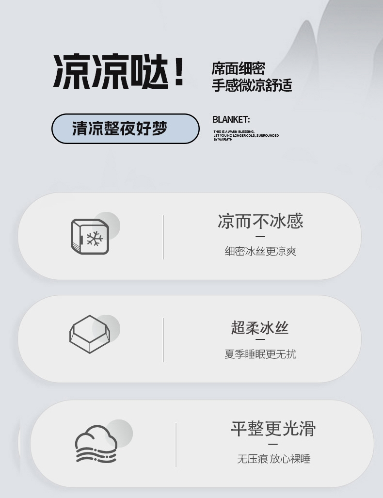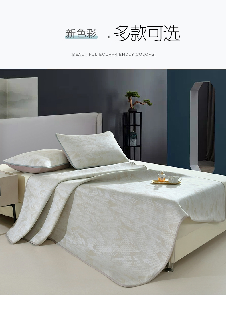 具有凉爽、温润/自然抑菌等多重优点;加密冰丝编制工艺,温柔细腻,优越的排湿性能;严选天然草本超柔冰丝纤维,与华夫格合二为一