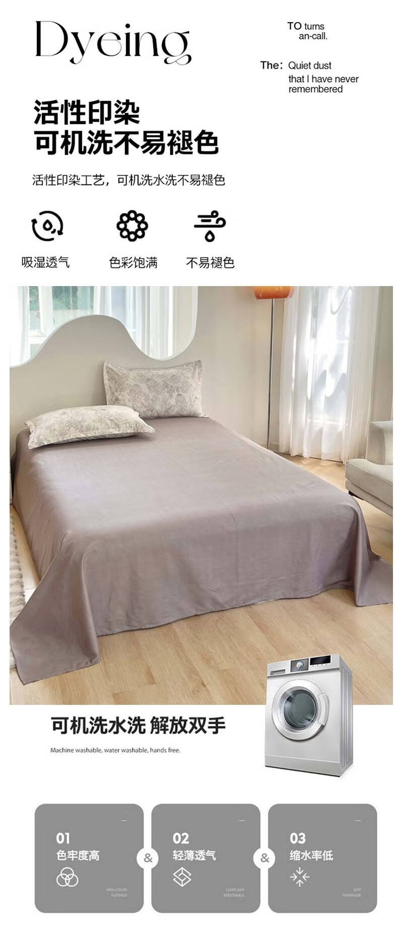 甄选上乘棉花为核心原材料,赋予舒适安心的睡觉体验;AB双版精心搭配的版型设计,给床品增添层次愈睡愈爱;新一代活性印染工艺,颜色靓丽,不易起球,不易褪色