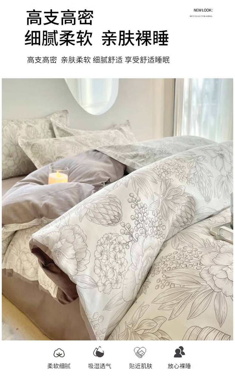 配置清单:床单*1 被套*1 枕套*2 包装*1