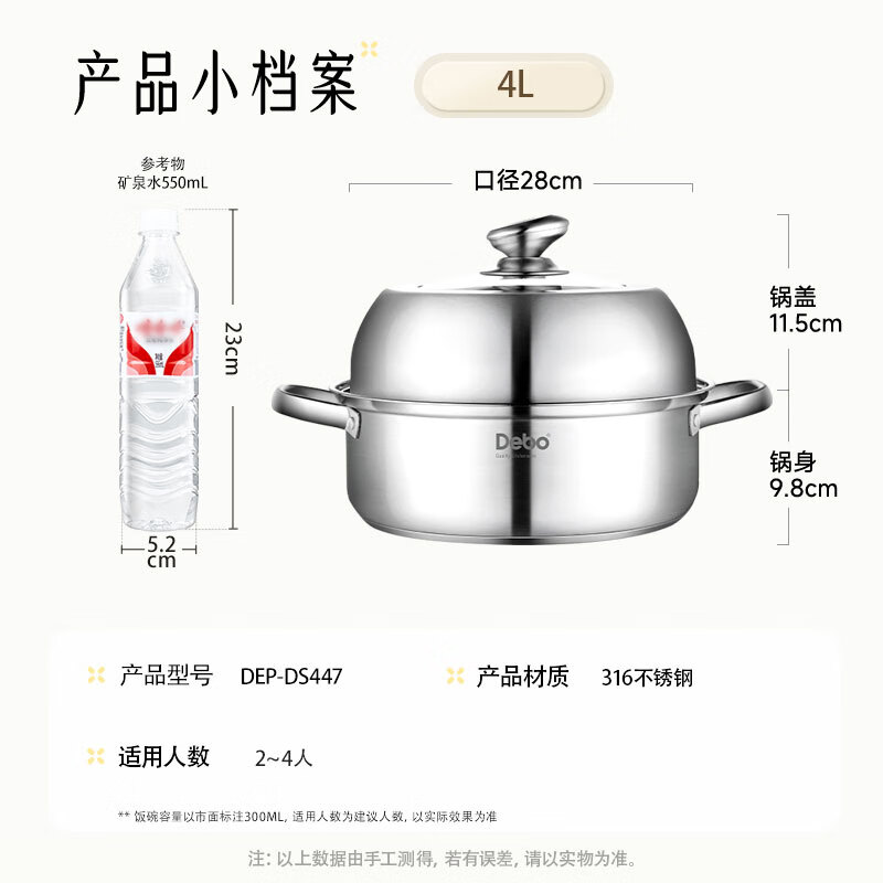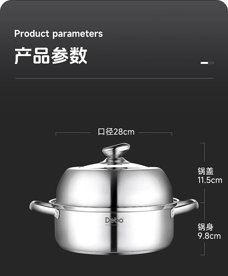 德铂 克米特双层不锈钢蒸锅28cmDEP-DS447