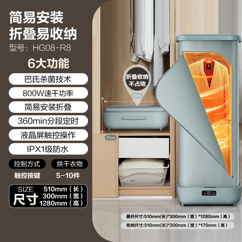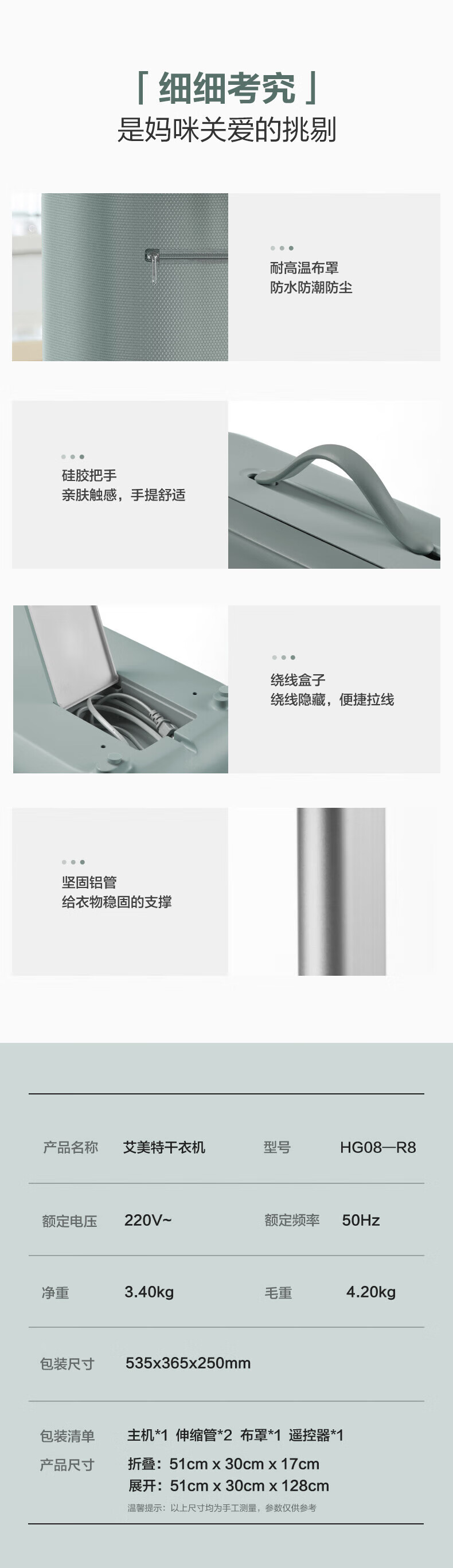 艾美特 巴氏杀菌折叠收纳烘干机干衣机HG08-R8