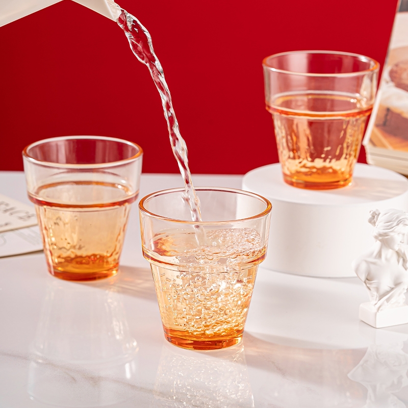 星橙玻璃杯,加厚玻璃材质,圆润杯口贴合唇感;饮用顺滑,厚底防滑稳固,放置桌面稳如磐石;简约线条勾勒现代美学适配北欧风轻奢风等多种家居风格