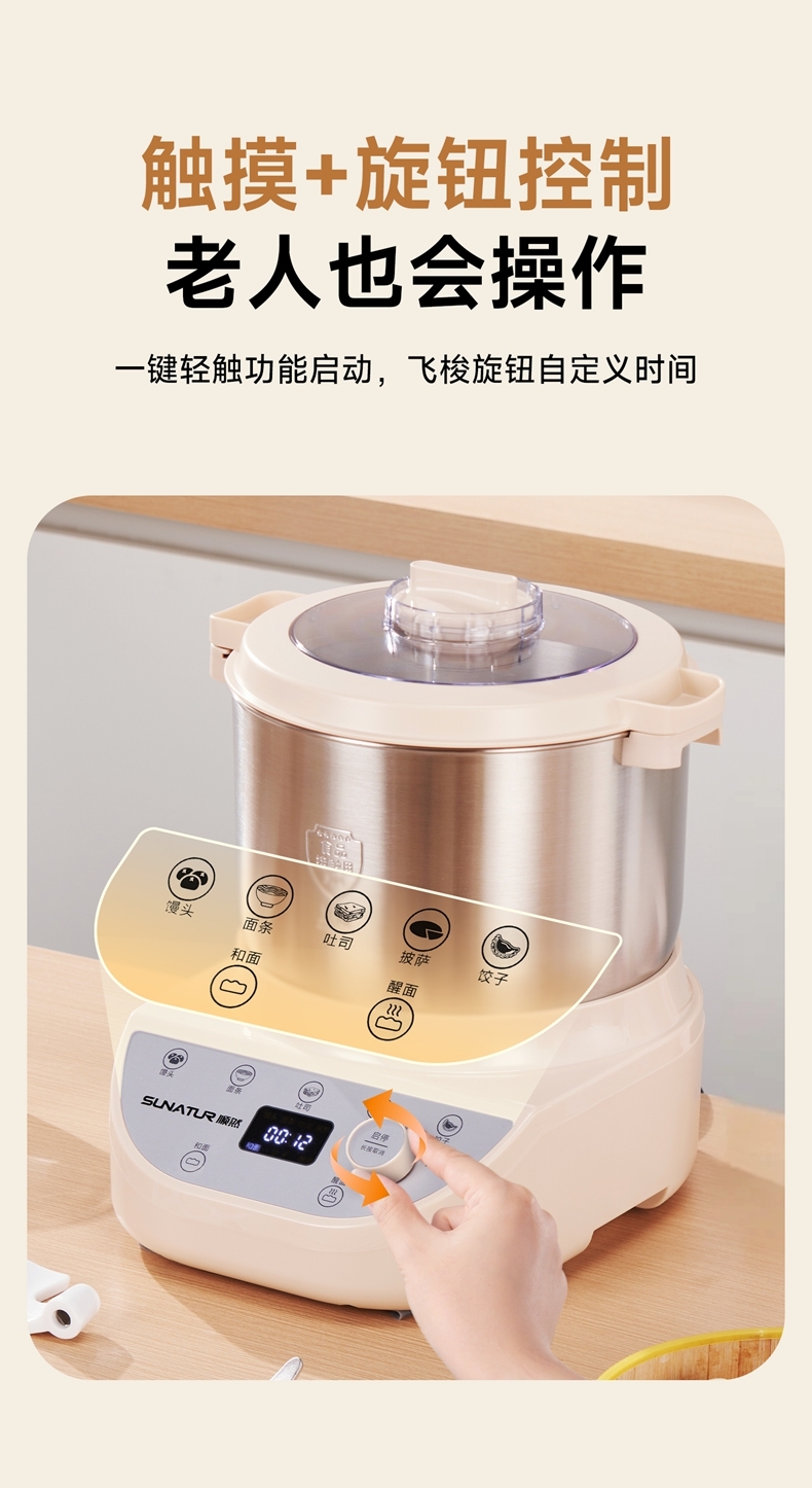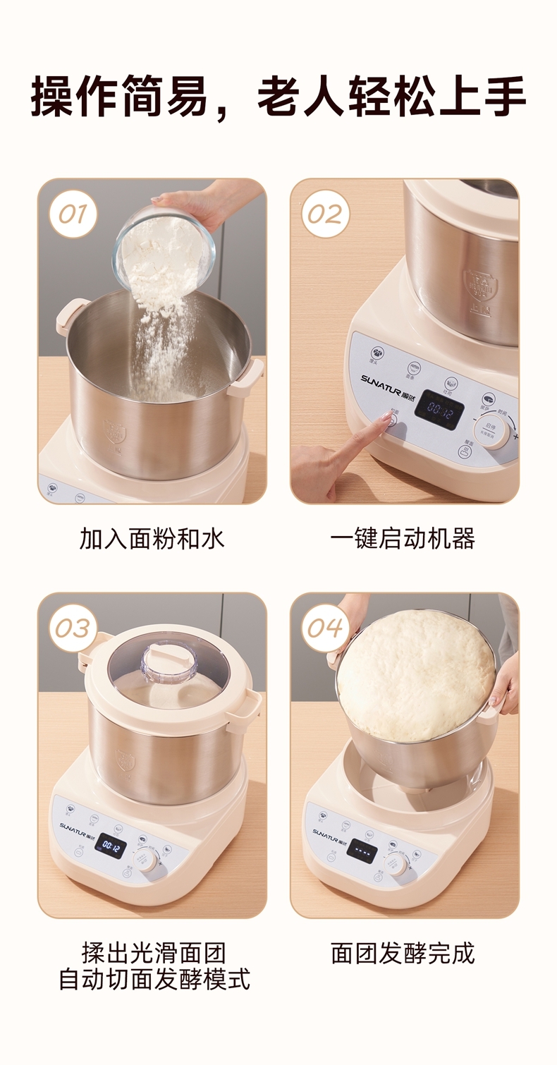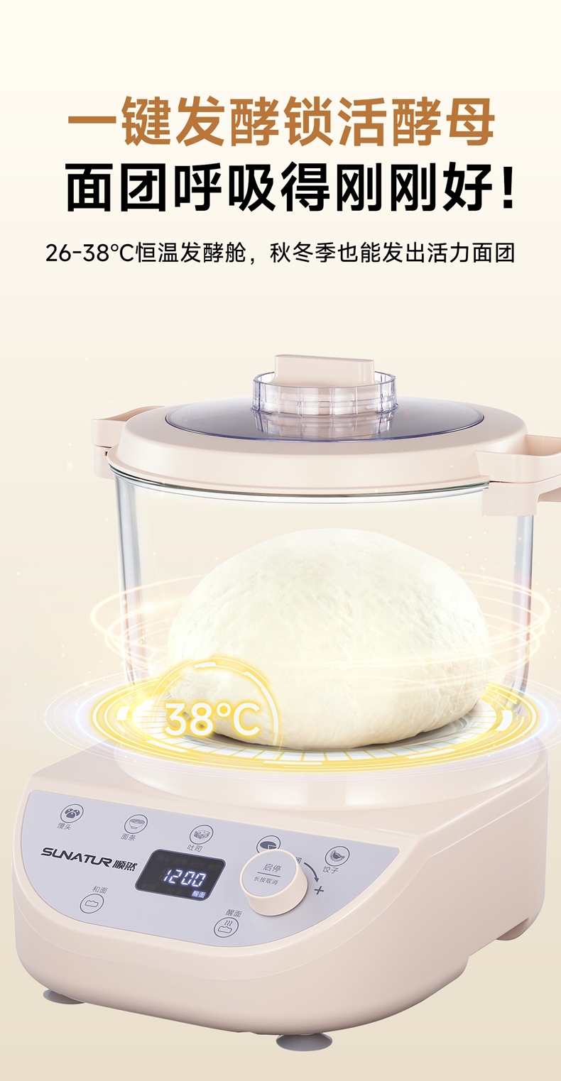 智能便捷:带有微电脑定时功能,智能揉面 + 恒温醒面,无需人工长时间看管,省力又省心。