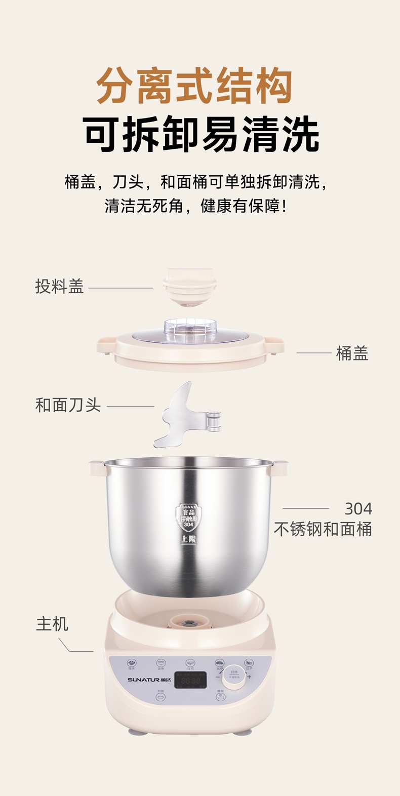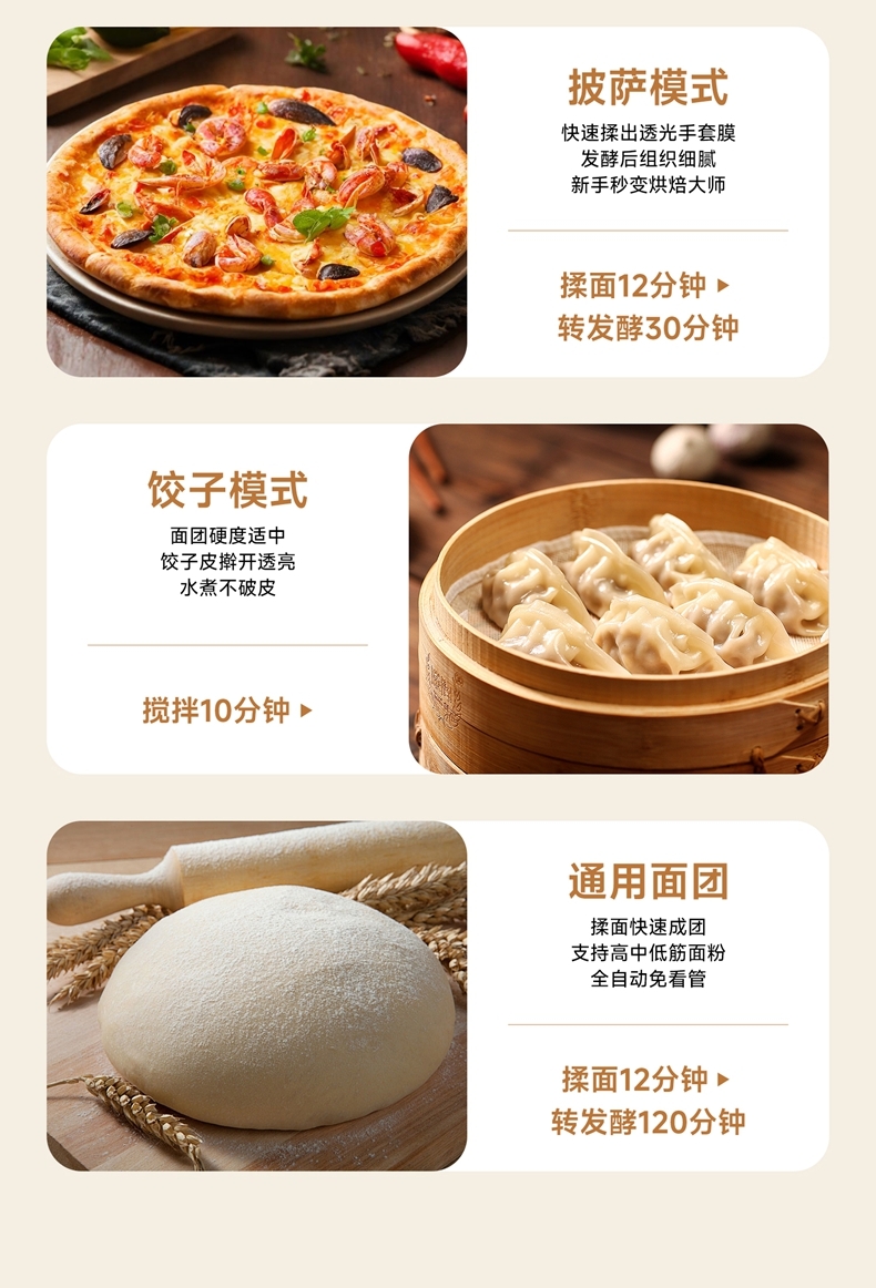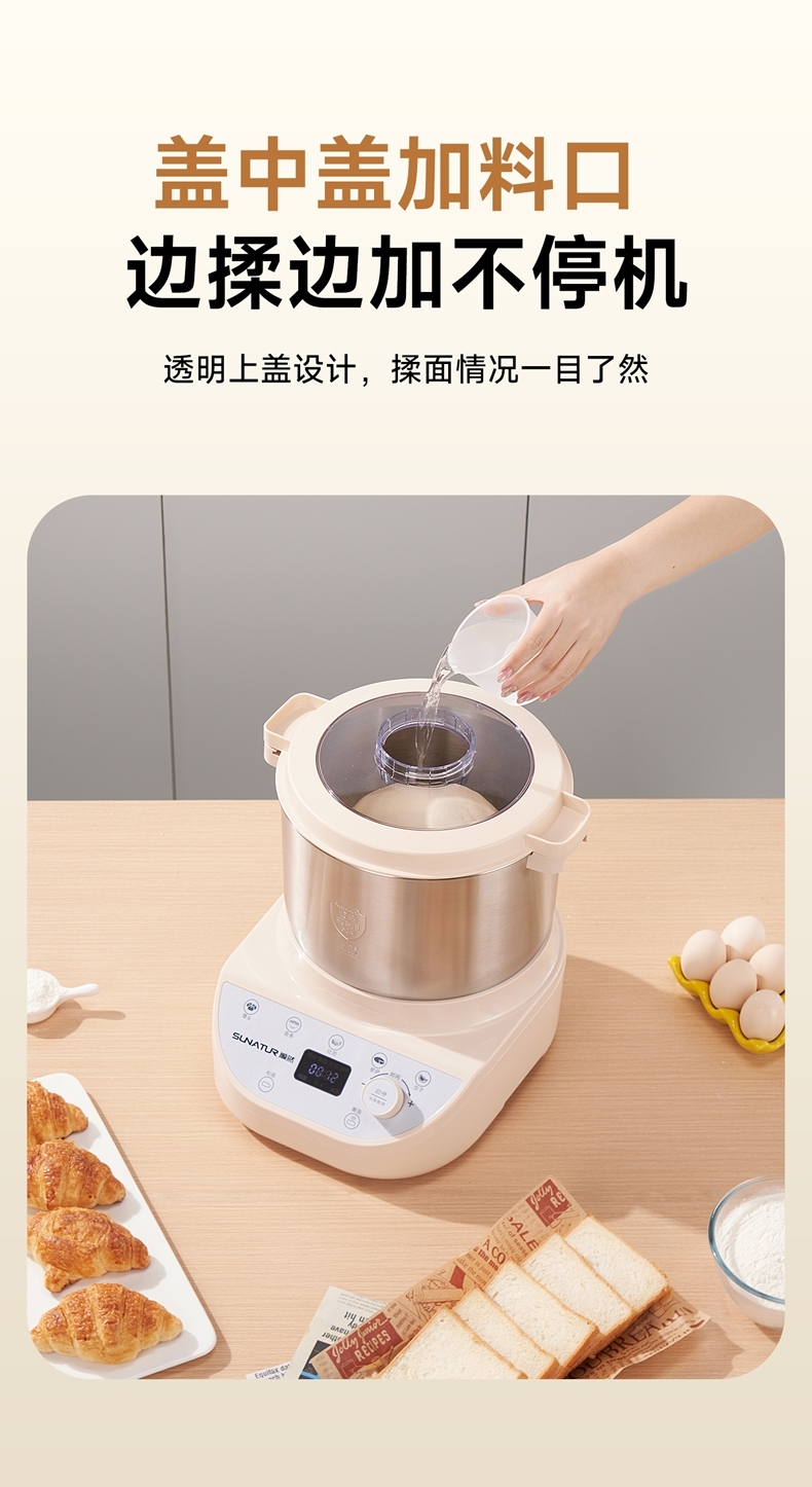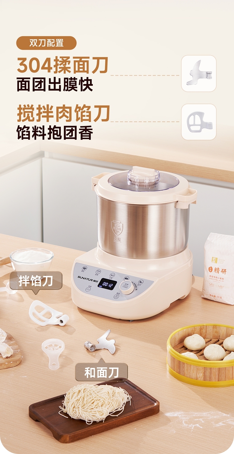 智能便捷:带有微电脑定时功能,智能揉面 + 恒温醒面,无需人工长时间看管,省力又省心。