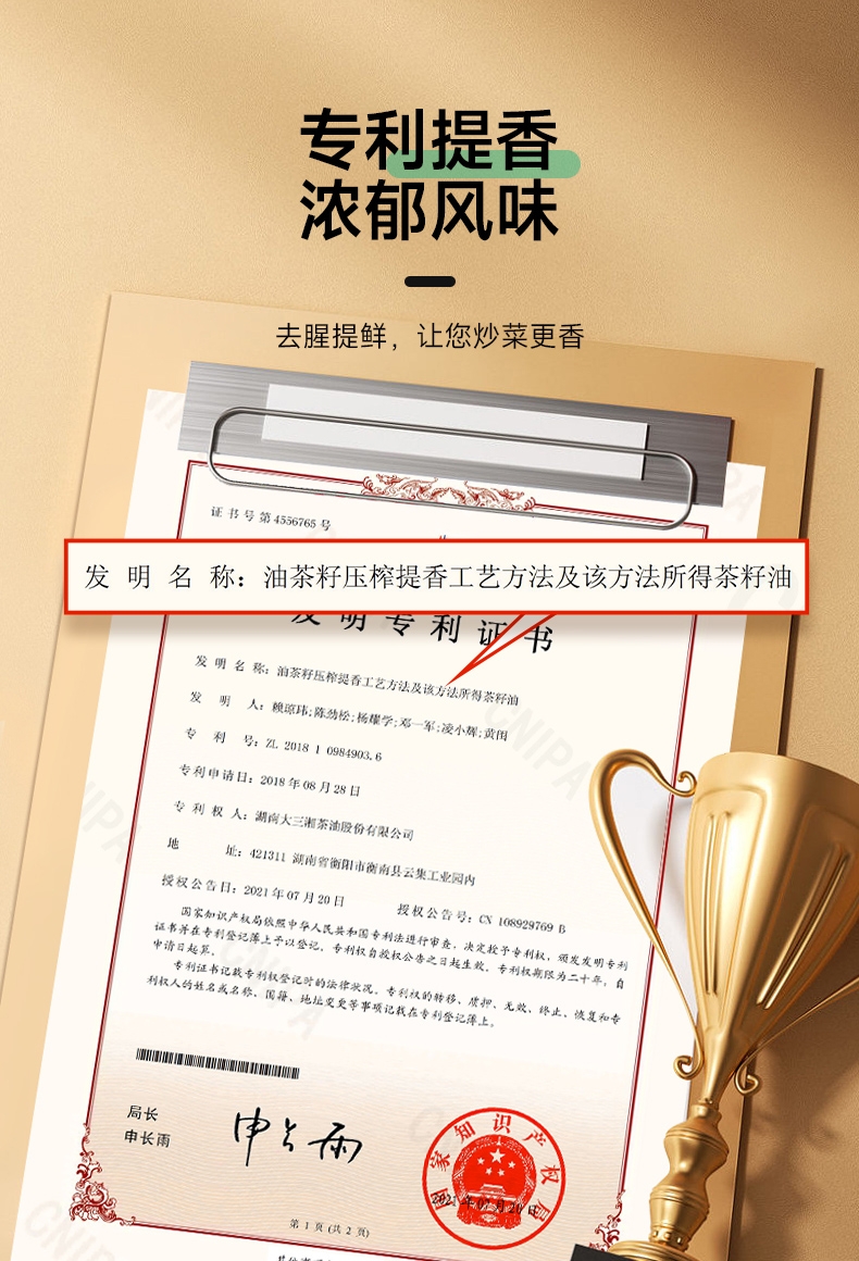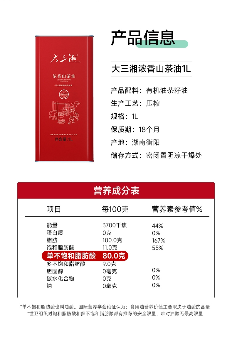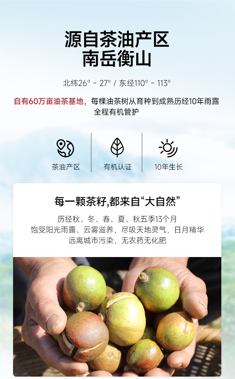 浓香纯正,风味浓郁,不止是土榨坊的味道 ;230°的高烟点,符合中国人的烹饪习惯;荤菜好搭档 入味不腻 茶油分子小,渗透力强