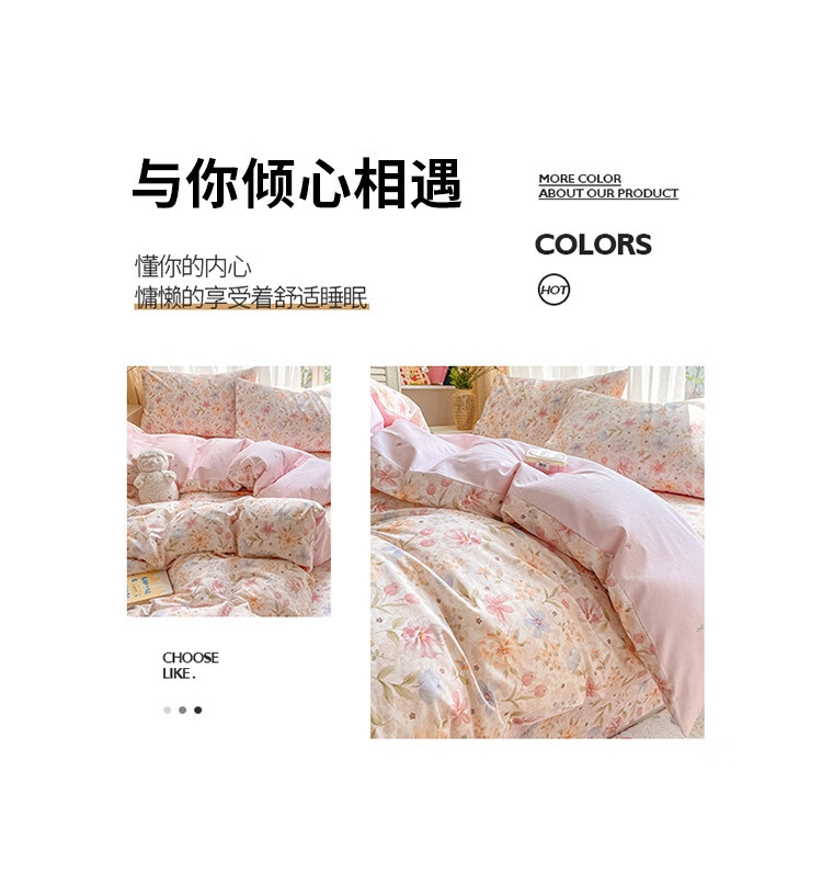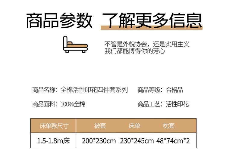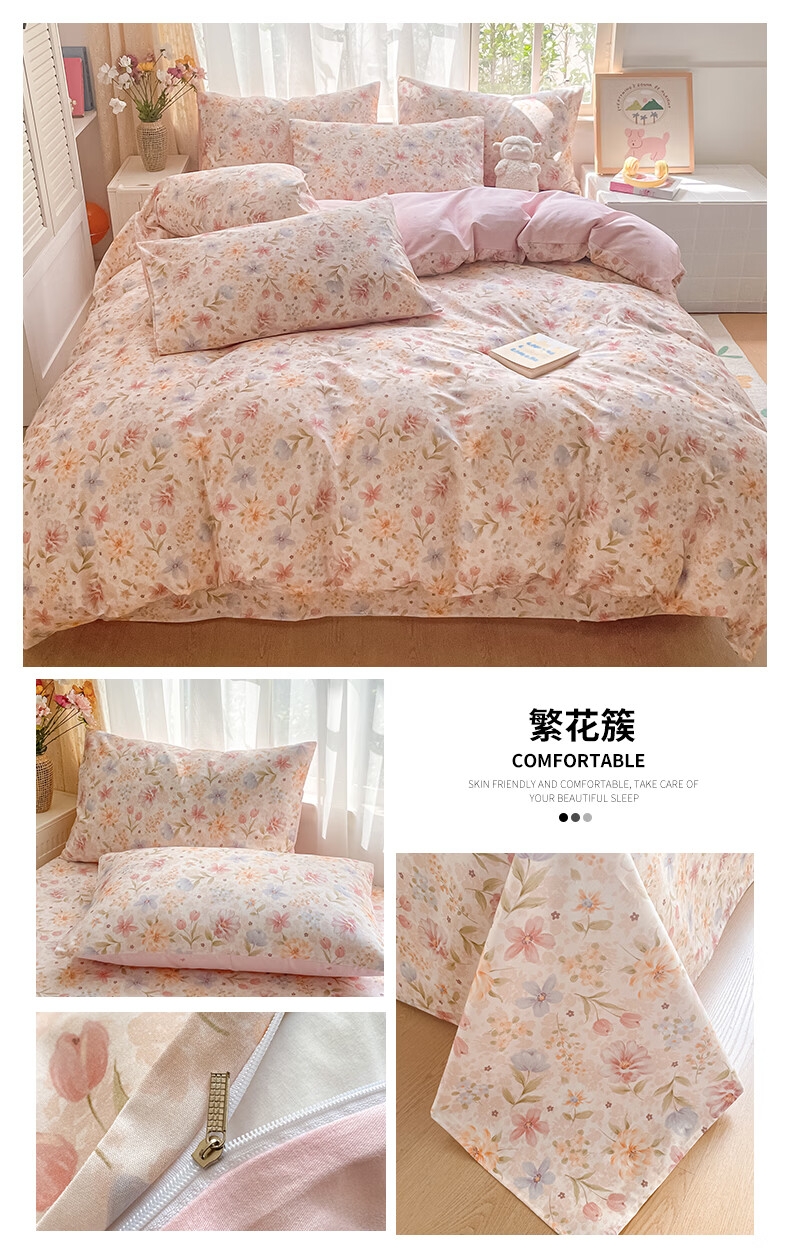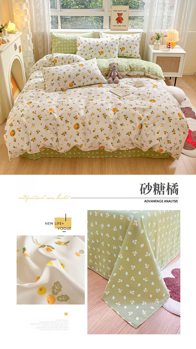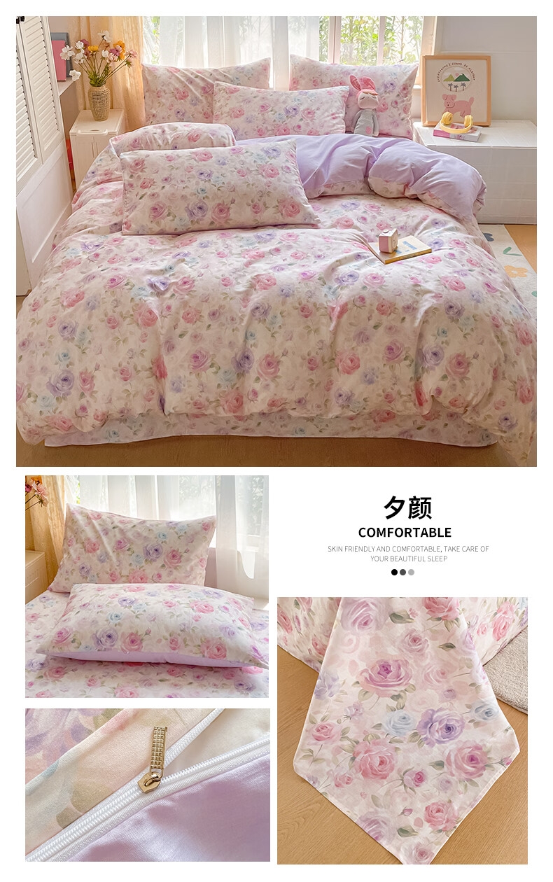 配置清单:被套*1、床单*1、枕套*2、包装*1