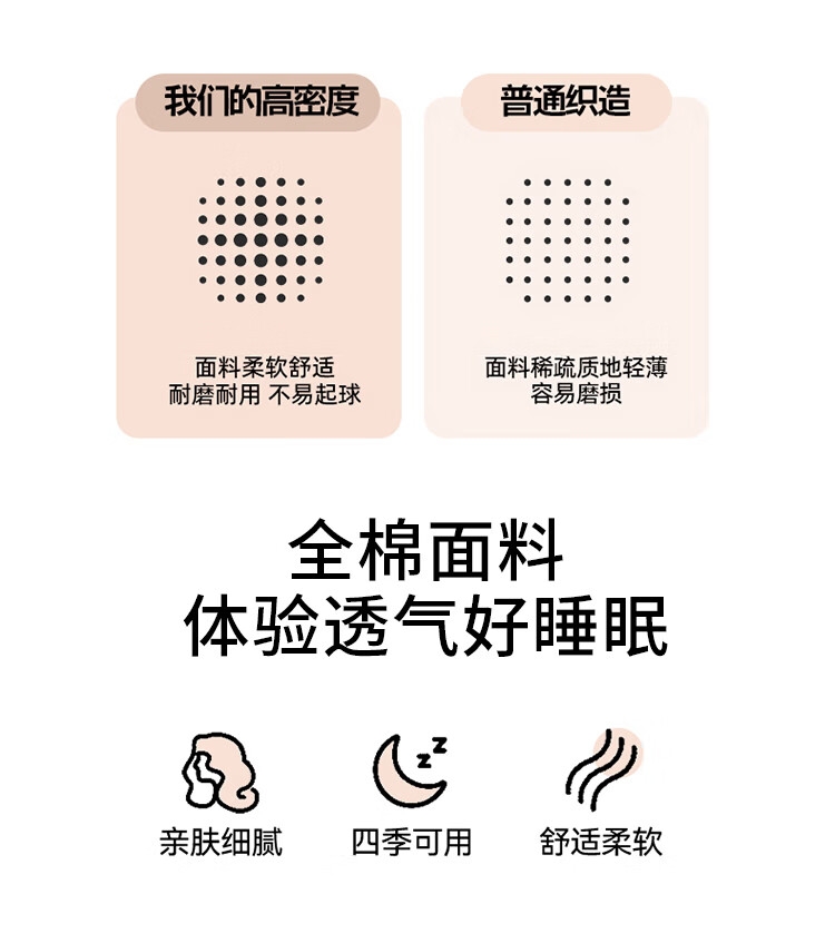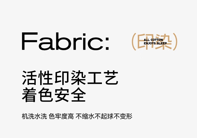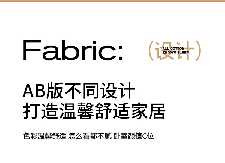 甄选上乘棉花为核心原材料,赋予舒适安心的睡觉体验;AB双版精心搭配的版型设计,给床品增添层次愈睡愈爱;新一代活性印染工艺,颜色靓丽,不易起球,可机洗水洗