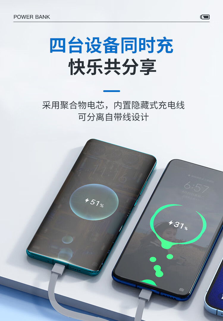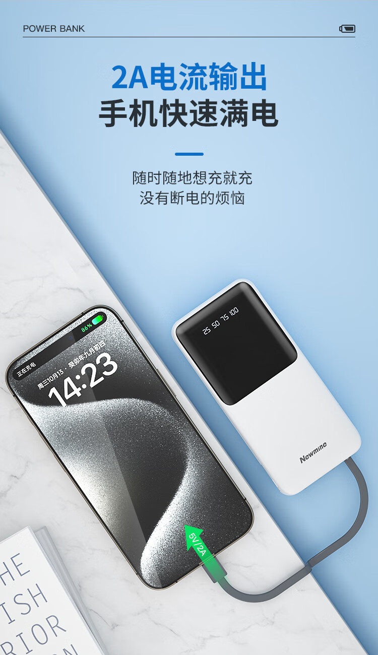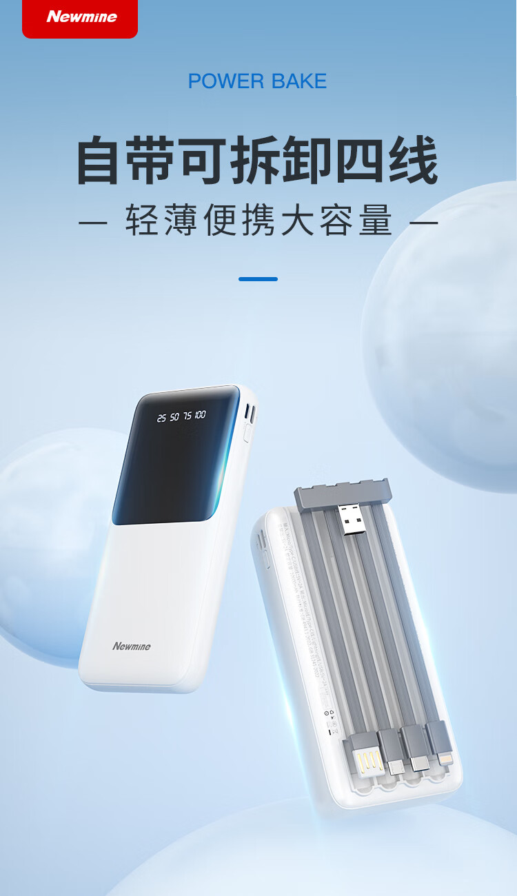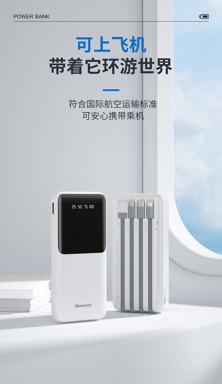 输出:Type-c线/Lightning线/Type-c线/USB口:5V/2A。