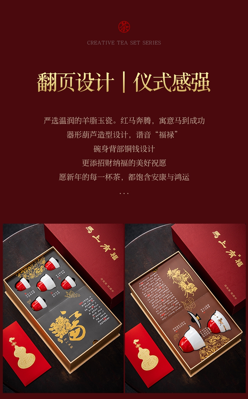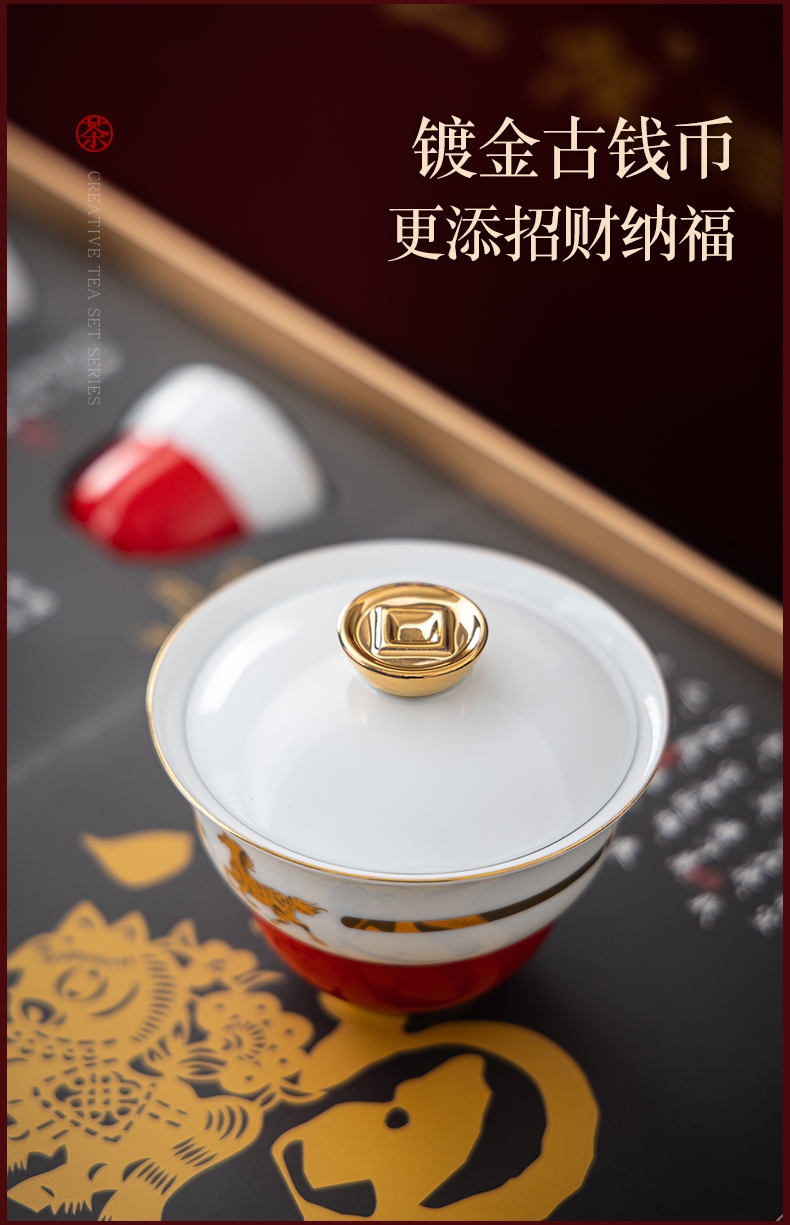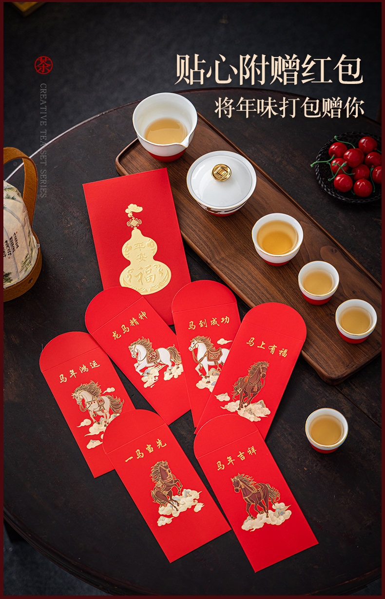 配置清单:盖碗*1+茶海*1+主人杯*1+茶杯*4+红包6+精品礼盒手提袋