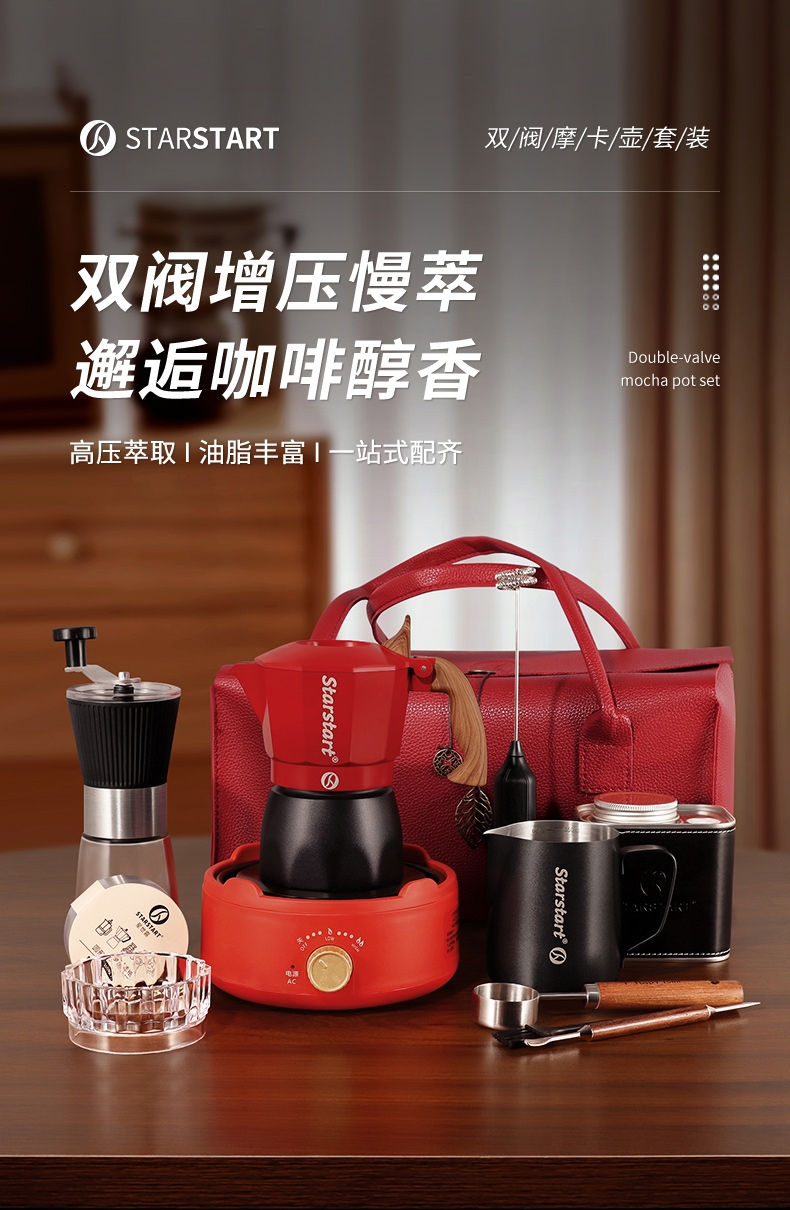 星世嘉 双阀摩卡壶十二件套皮革礼盒