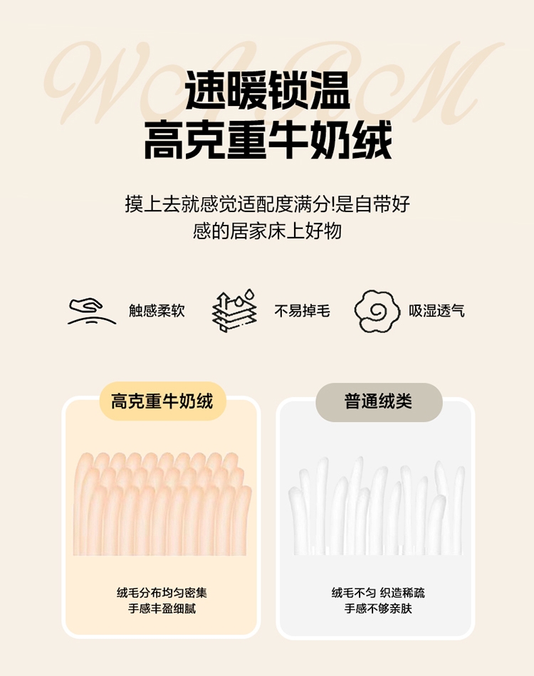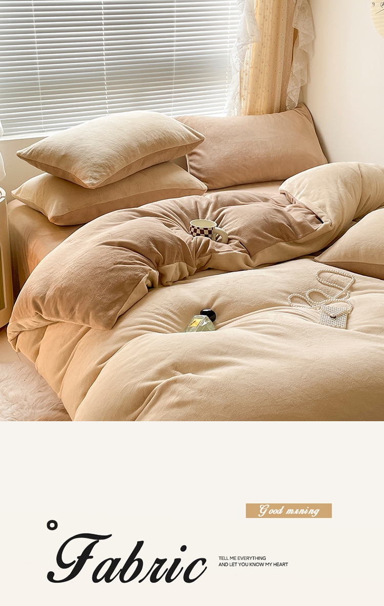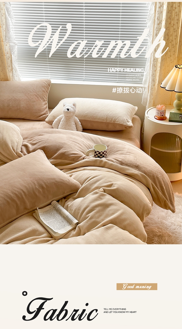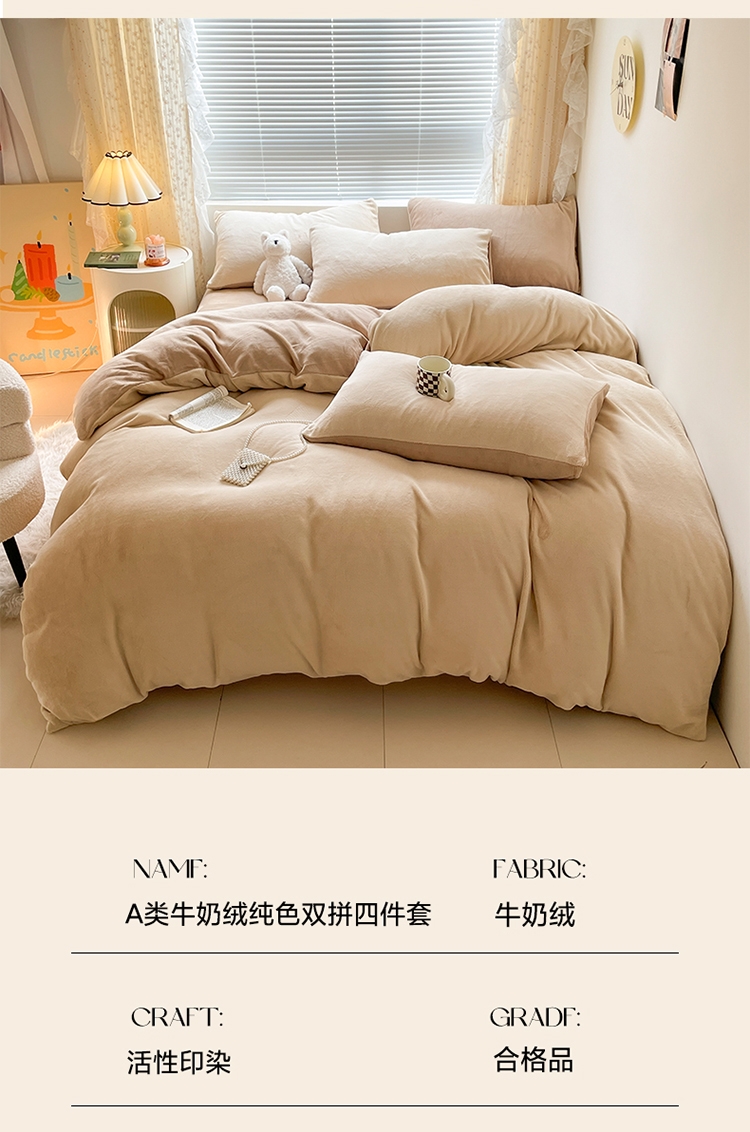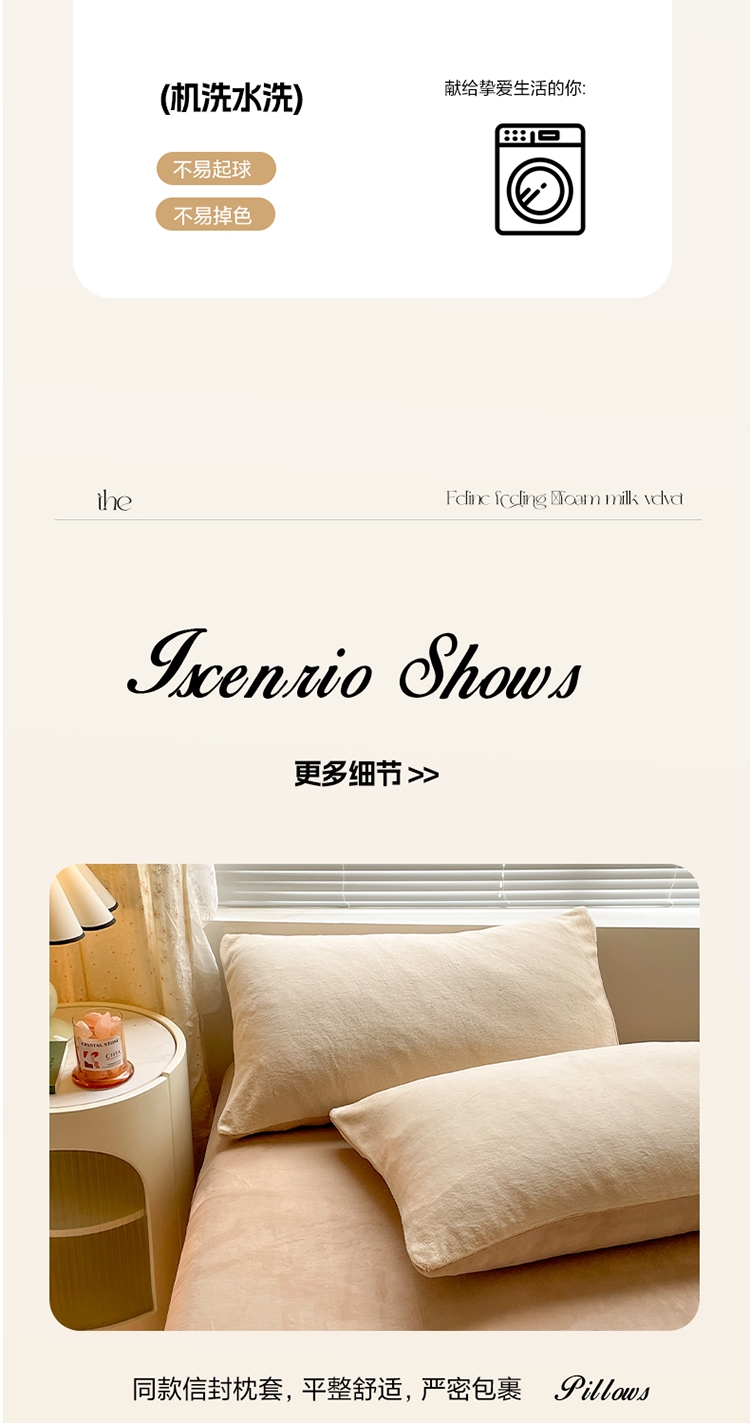 重磅牛奶绒面料,手感细腻软糯,透气性佳。;新一代活性印染工艺,色牢度高,不易褪色可水洗;植入导电丝,静音舒适呵护娇嫩肌肤,提升睡眠质量。