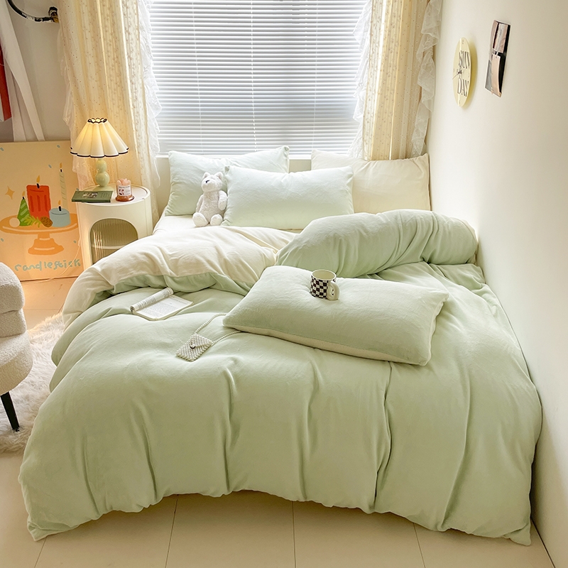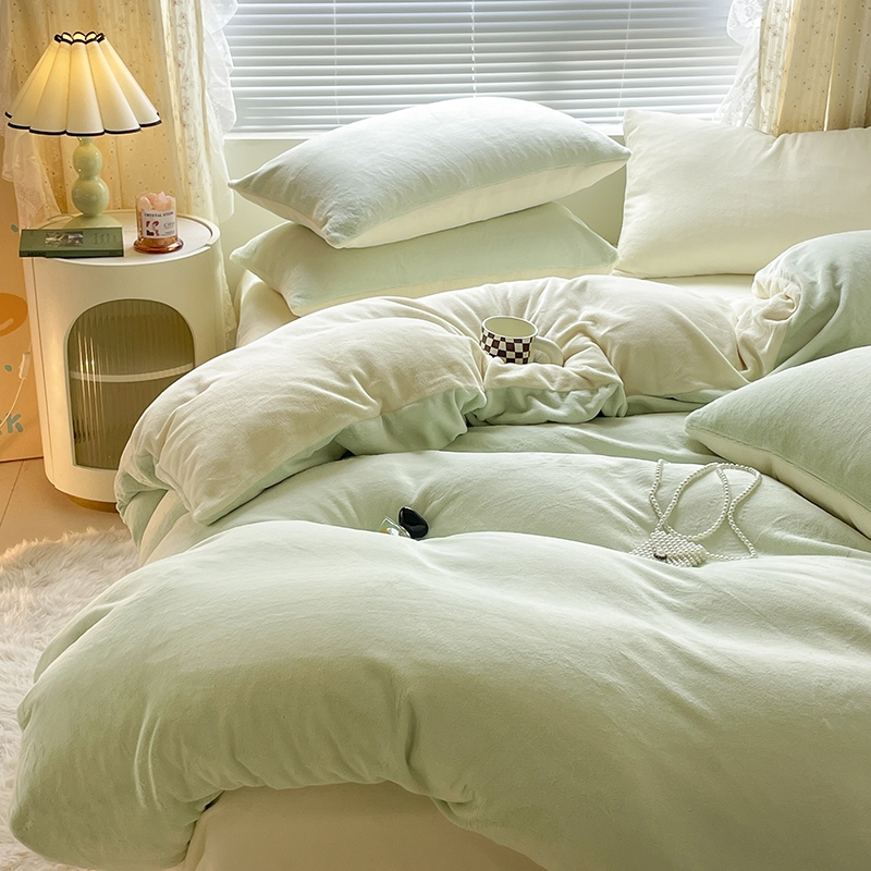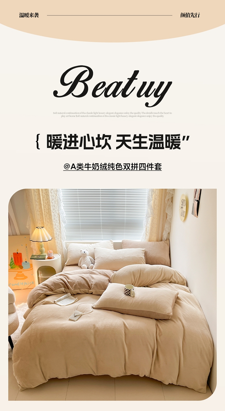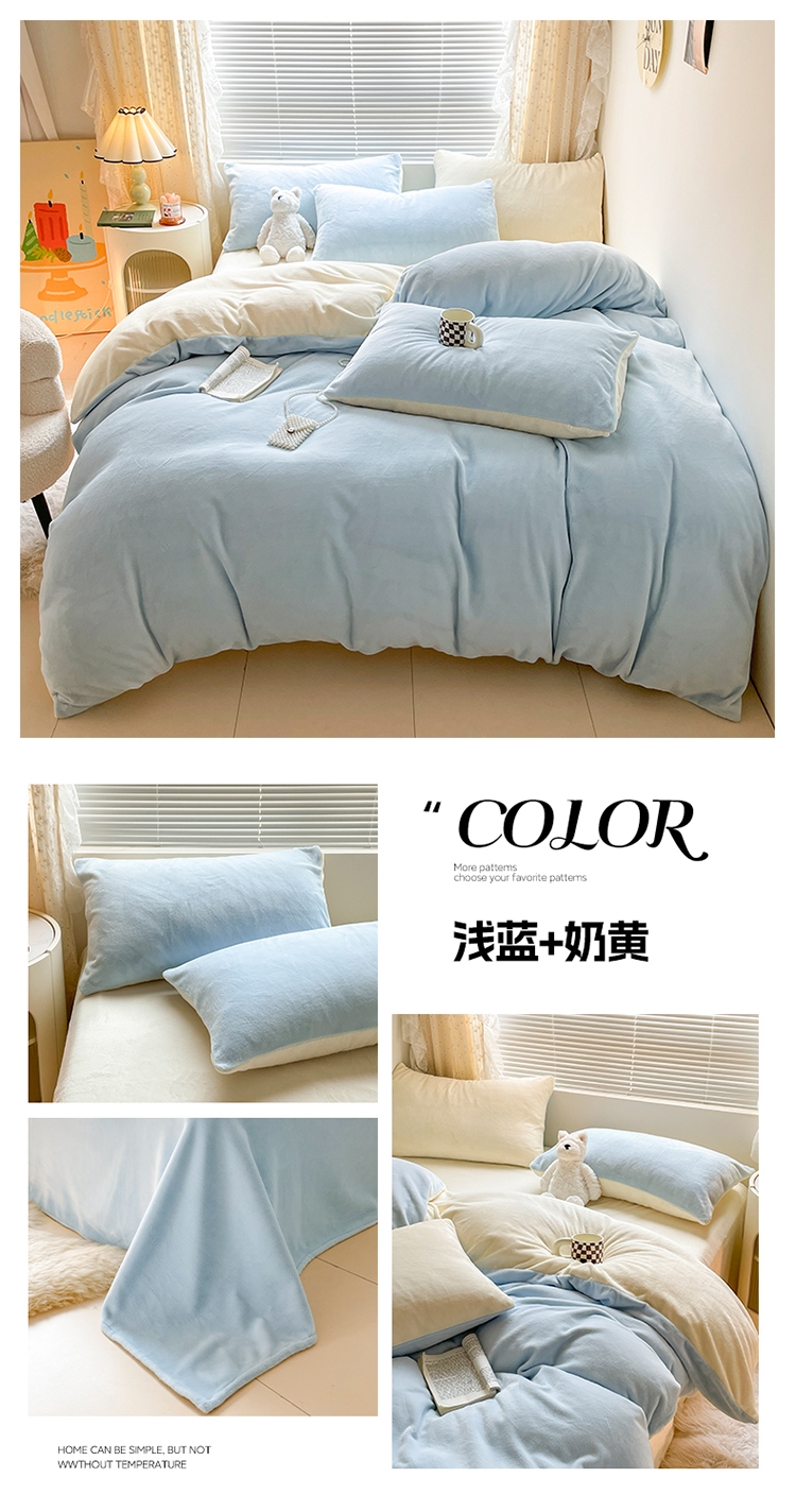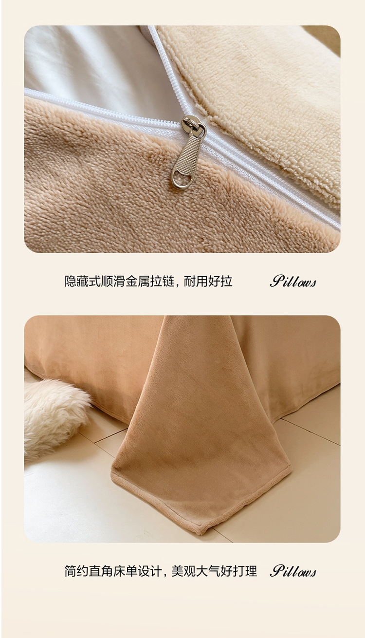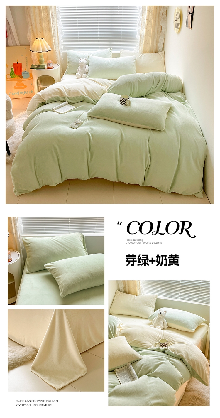 重磅牛奶绒面料,手感细腻软糯,透气性佳。;新一代活性印染工艺,色牢度高,不易褪色可水洗;植入导电丝,静音舒适呵护娇嫩肌肤,提升睡眠质量。